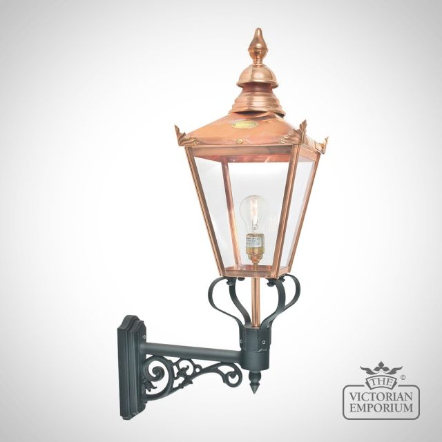 Large classic up lantern in stunning copper with a black wall bracket for that authentic Victorian feel