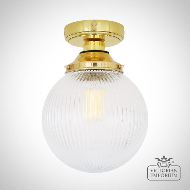 The Cherish Bathroom Flush Mount Ceiling Light has a Holophane glass globe lamp shade which diffuses light softly - a great choice for bathrooms in the centre of the ceiling or above a sink