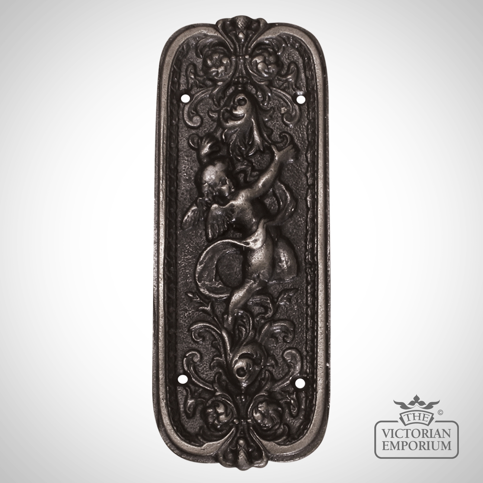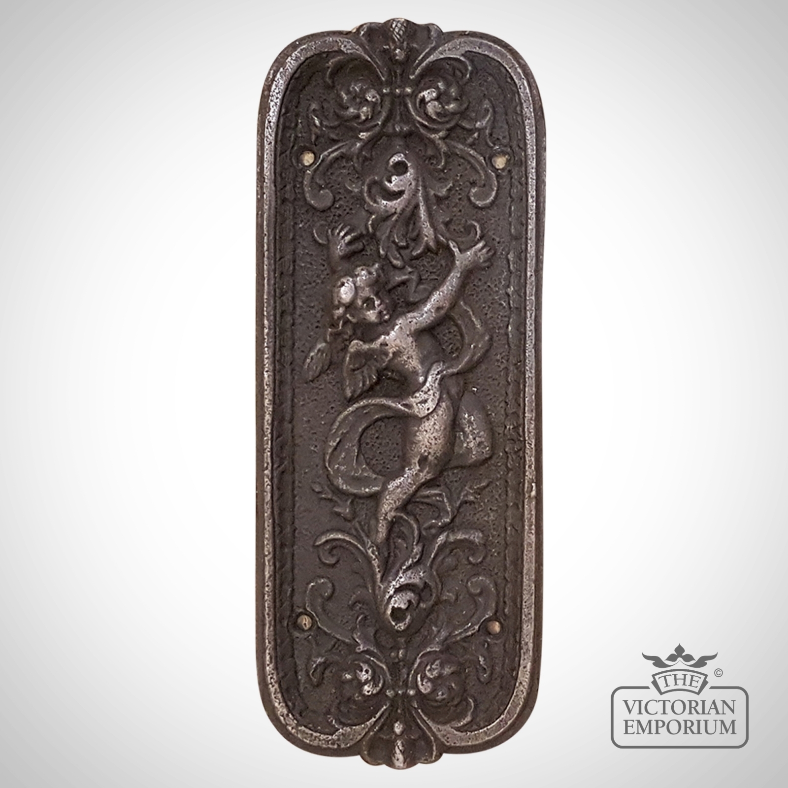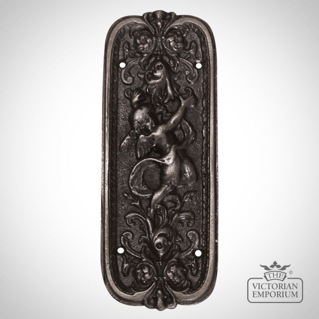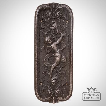 Really beautiful Cherub design push finger plate for a door in antique iron or antique brass, perfect for traditional doors