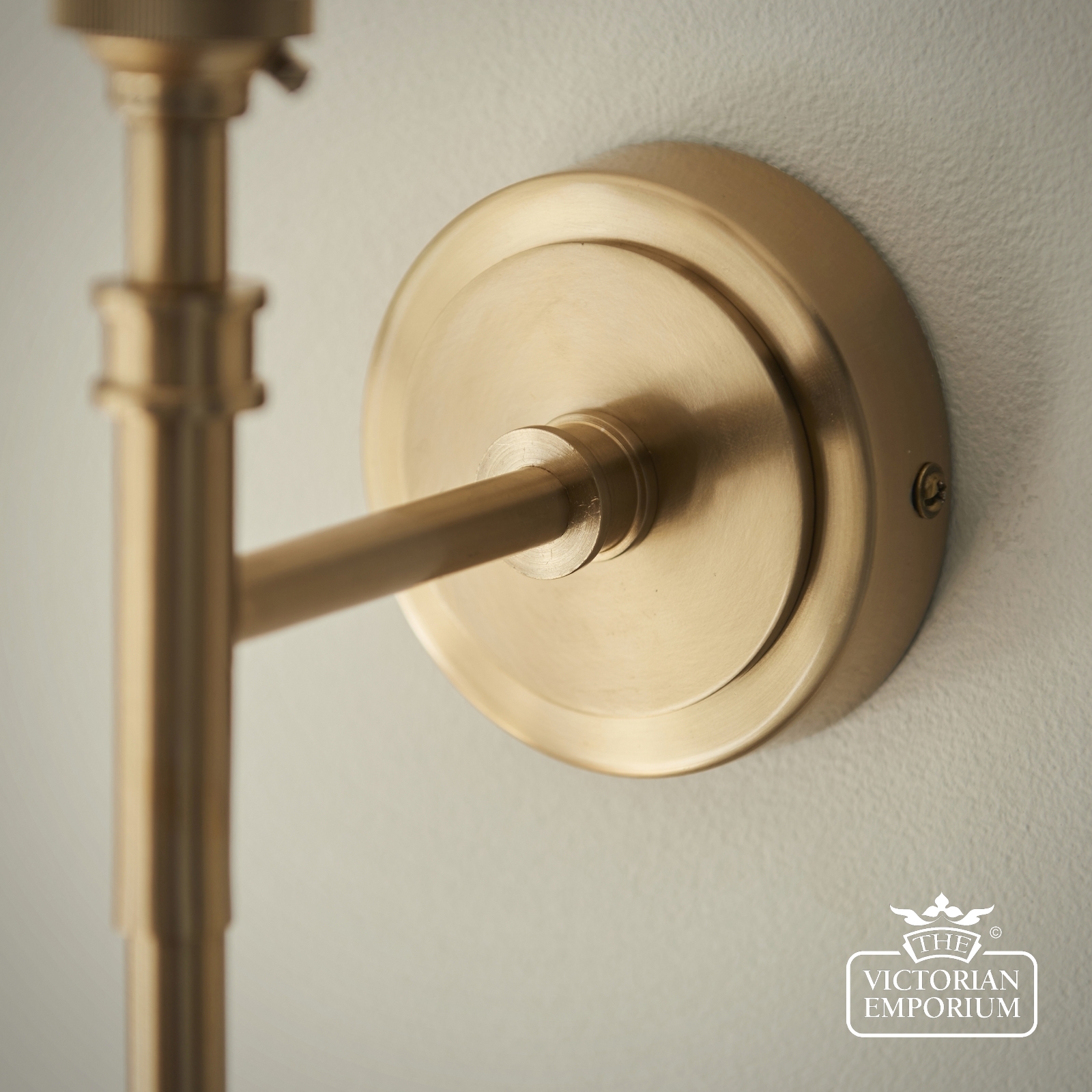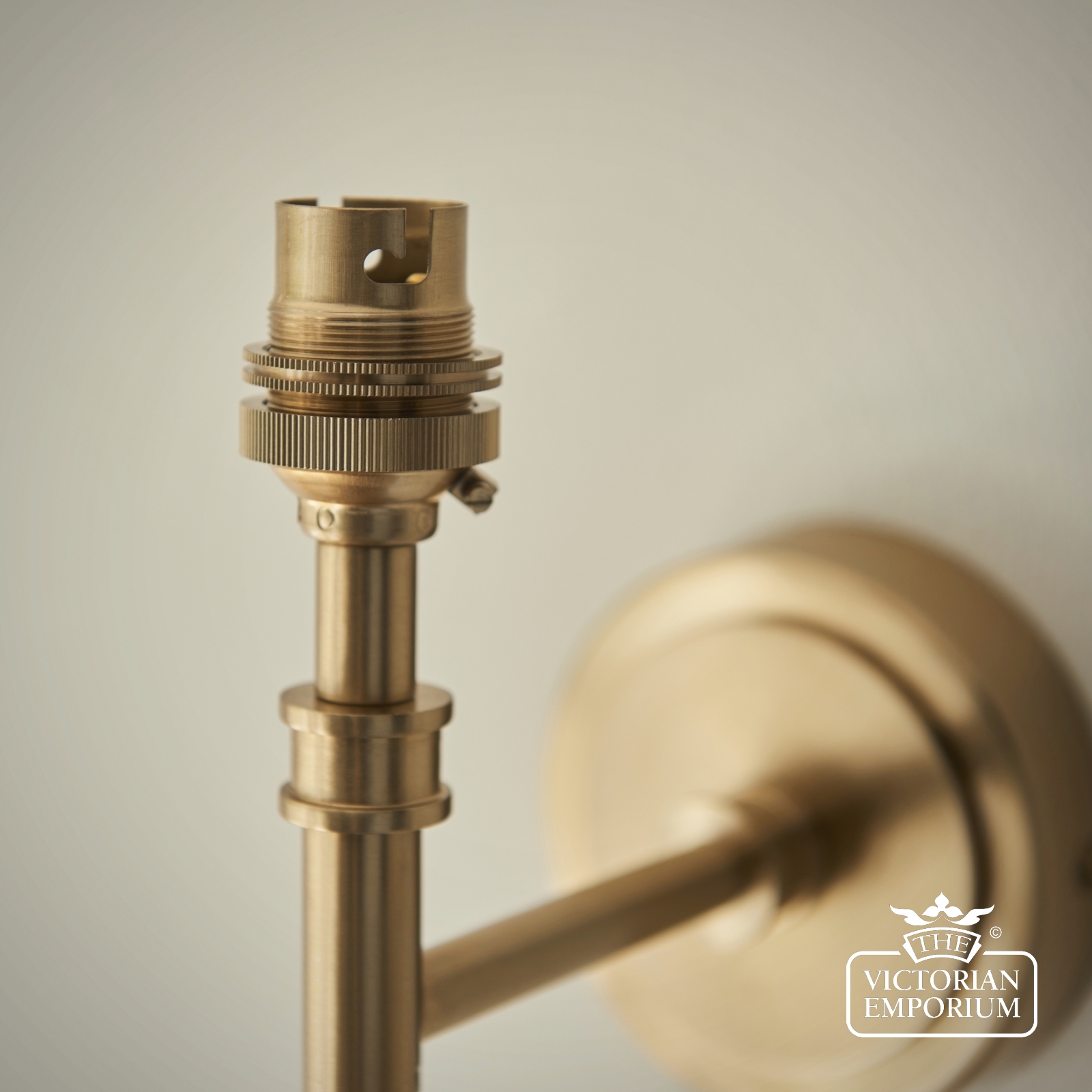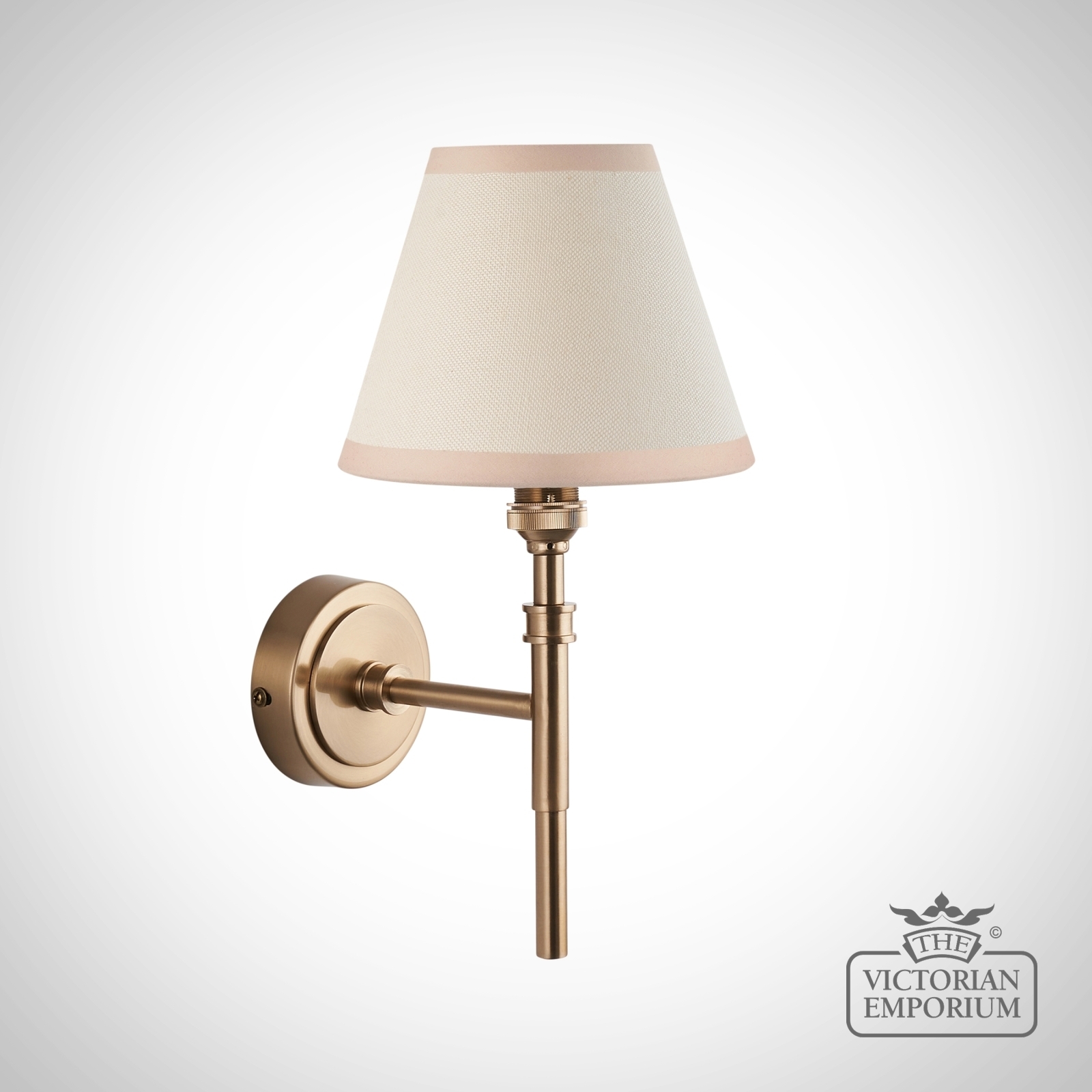 The timeless details of this wall light, finished in aged brass, with authentic brass B22 lamp holders make it the perfect addition to your home. Completed with a 16cm vintage & almond white Ivy shade