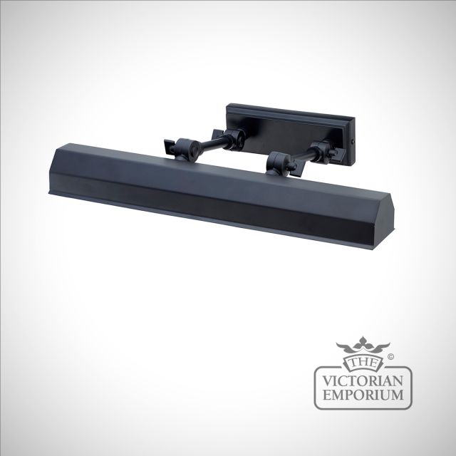 Medium picture light with knuckle joints to allow directional lights to be positioned perfectly to make the most of your art. Available in polished nickel, polished brass, aged brass, dark bronze and black