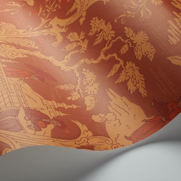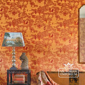 This wallpaper has been given a fresh take for today’s interior whilst retaining the oriental bearing of its past. A popular style in Victorian times, this Orientalist design features pastoral vignettes of Far Eastern life in hues of charcoal, Chinese red, ivory and drawing room blue.
