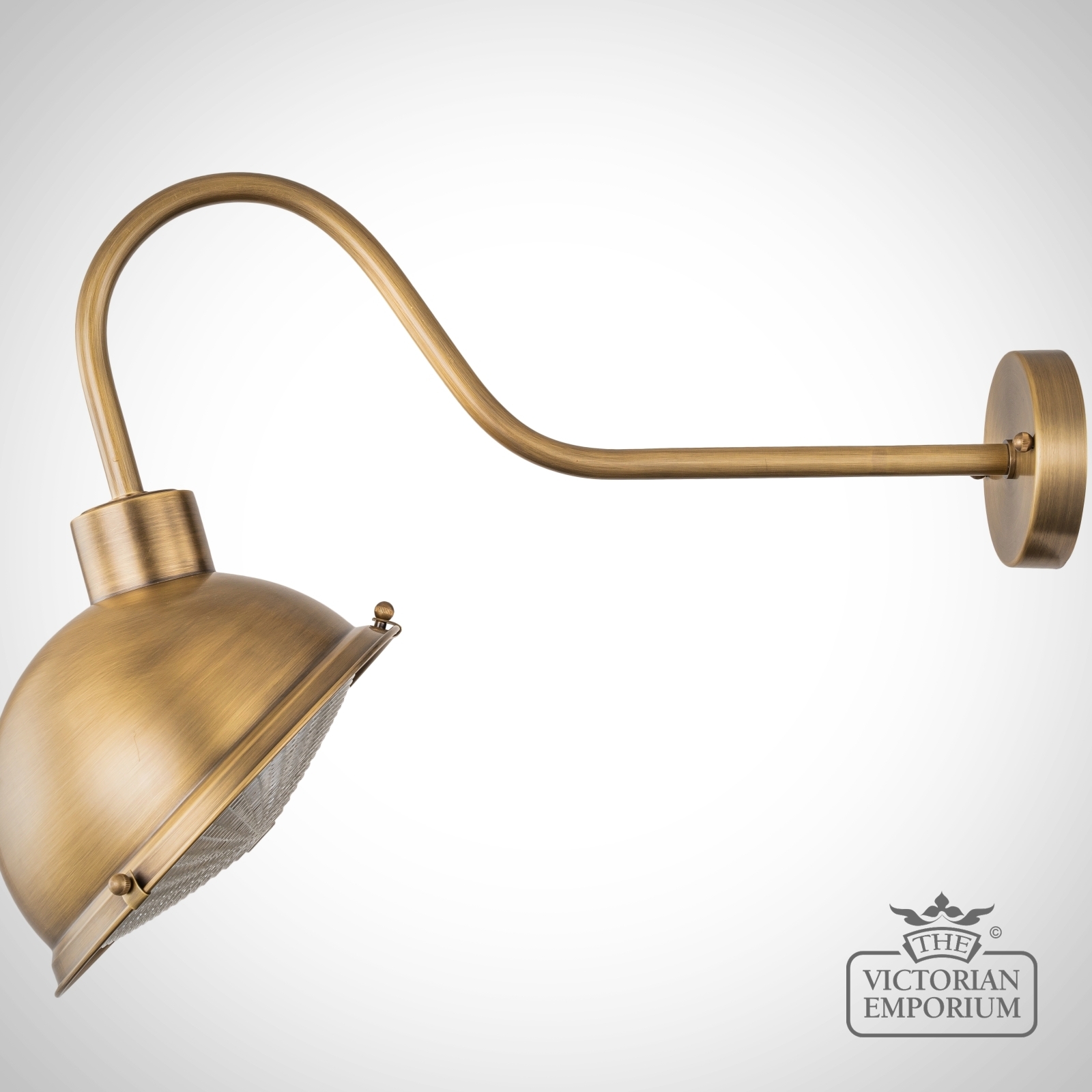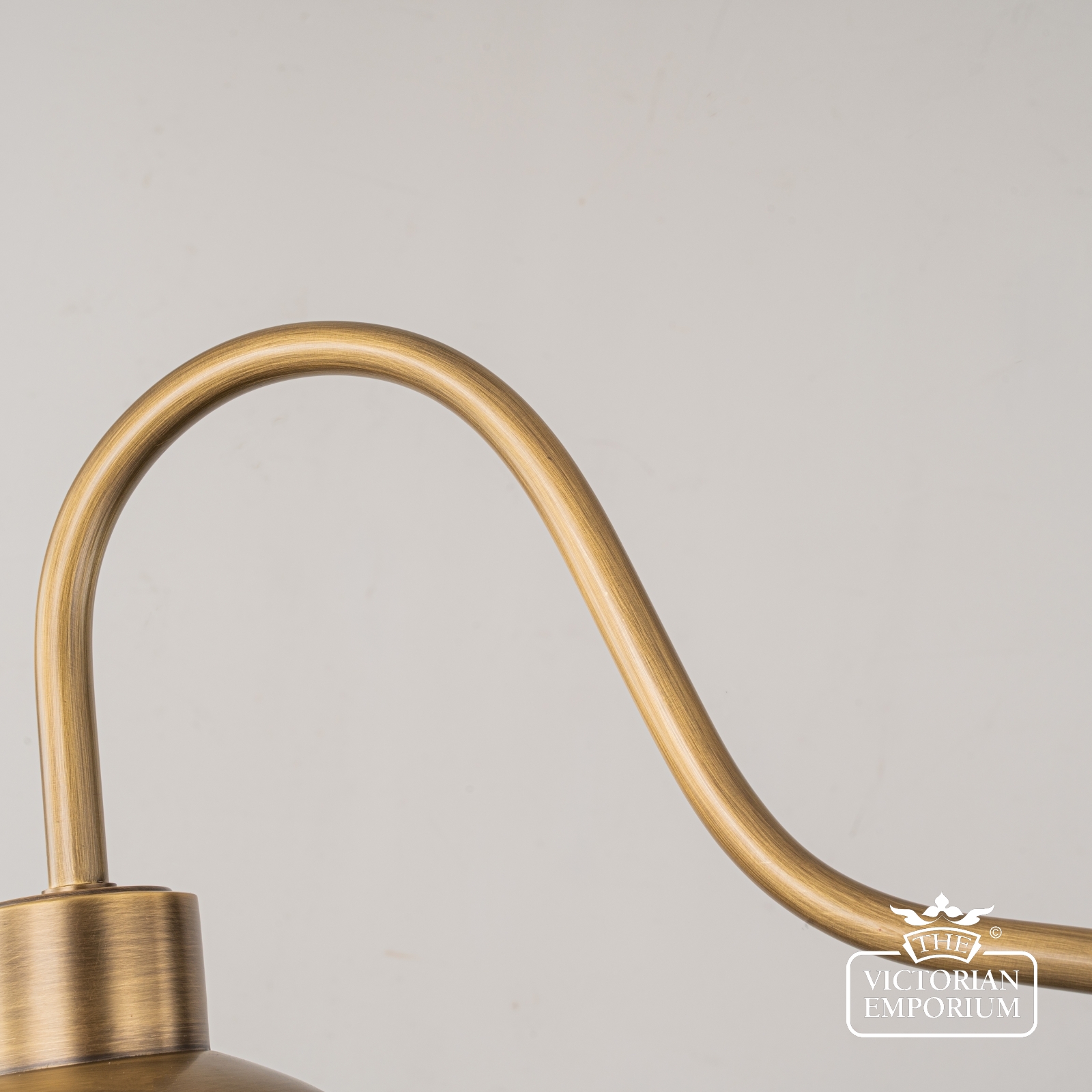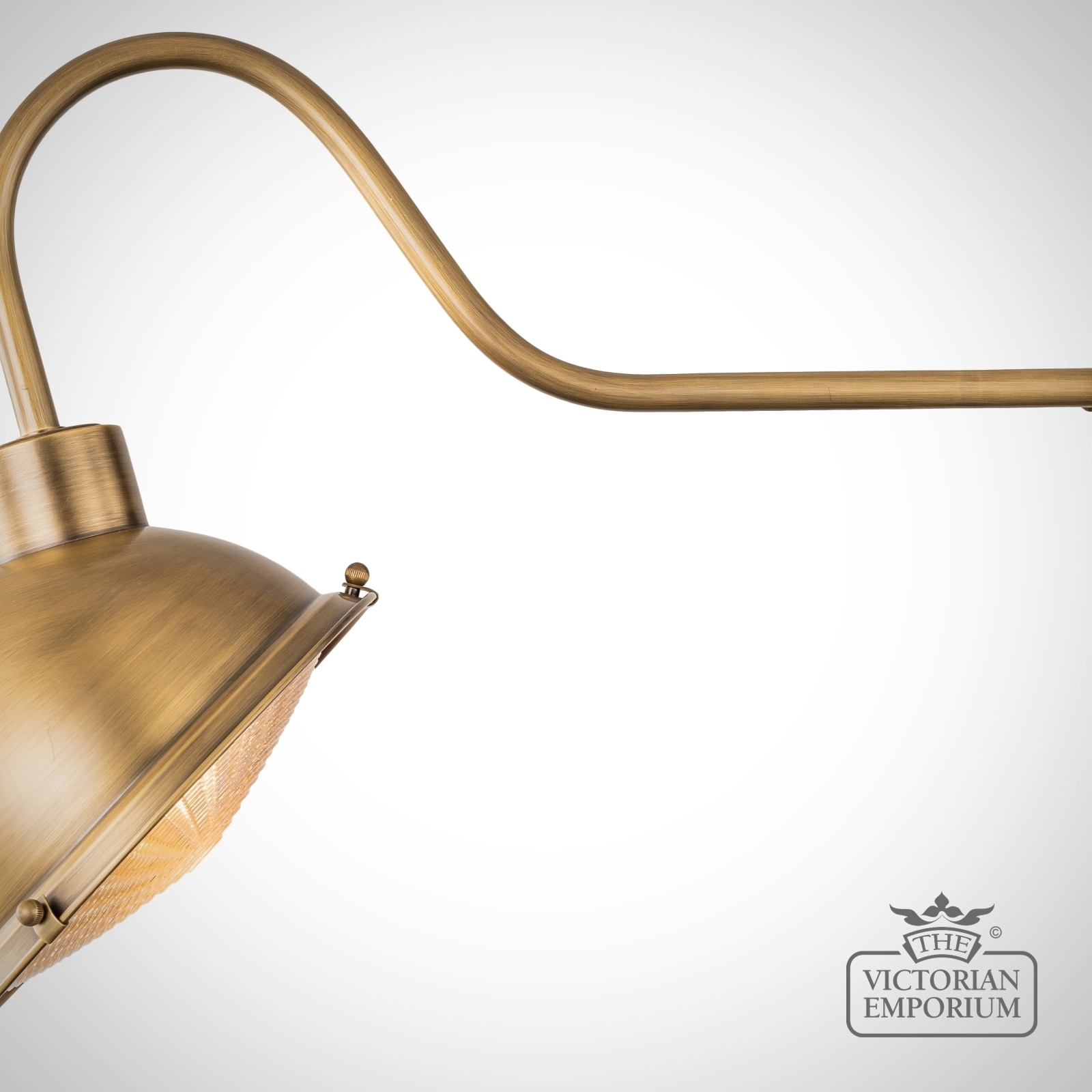 Elegant sign light in Antique Brass, especially useful for shop fronts and pub signs, in fact anywhere where signs need elegant illumination. Made of Brass with Clear Prismatic Glass.