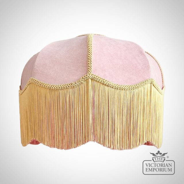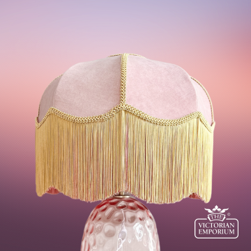 This is a beautiful Victorian Style lampshade with a pink velvet body and gold fringing can be purchased in a choice of sizes so that you can use it for table lamps, standing lamps, wall lights and ceiling lights around your period home