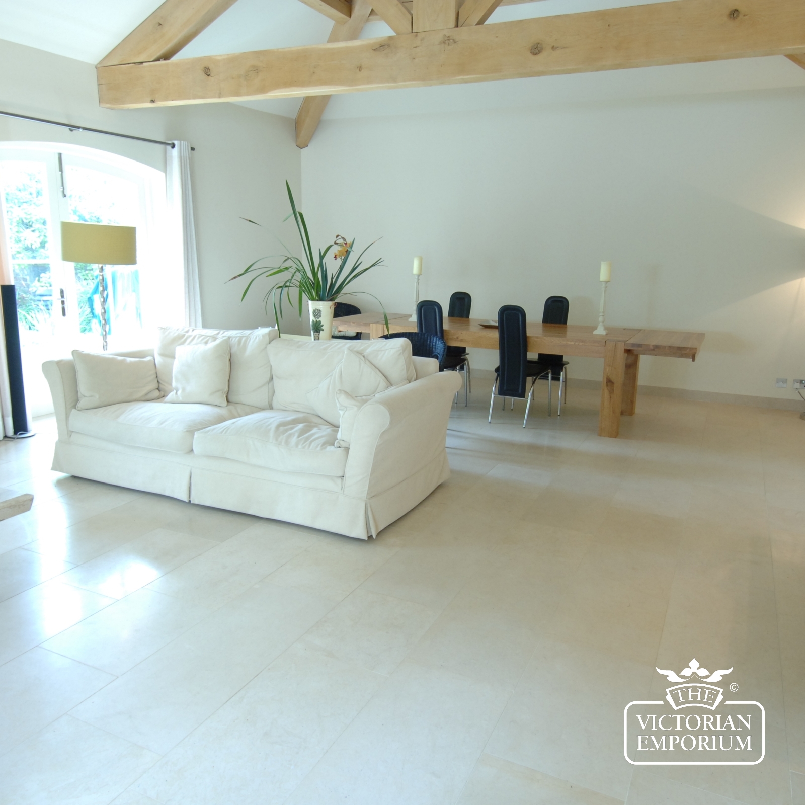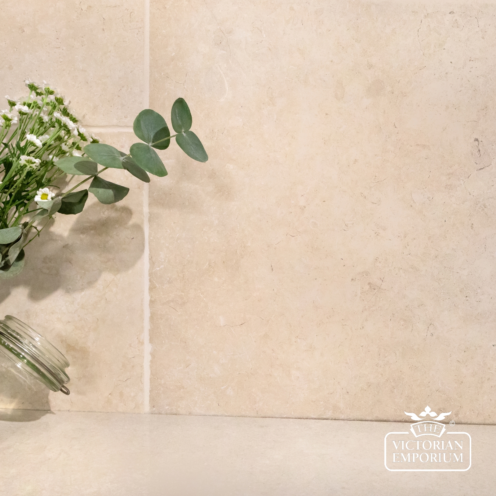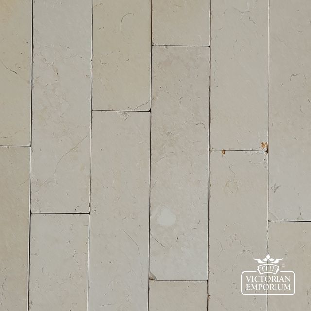 Limestone wall and floor bricks with creamy shades of vanilla enhanced by subtle grey veins