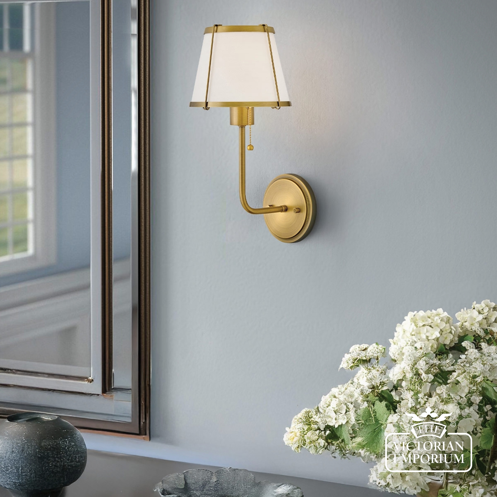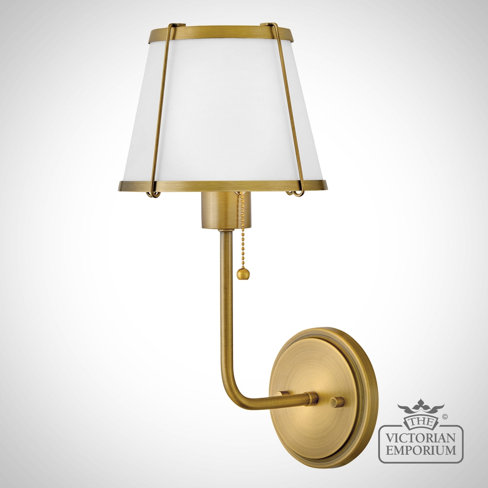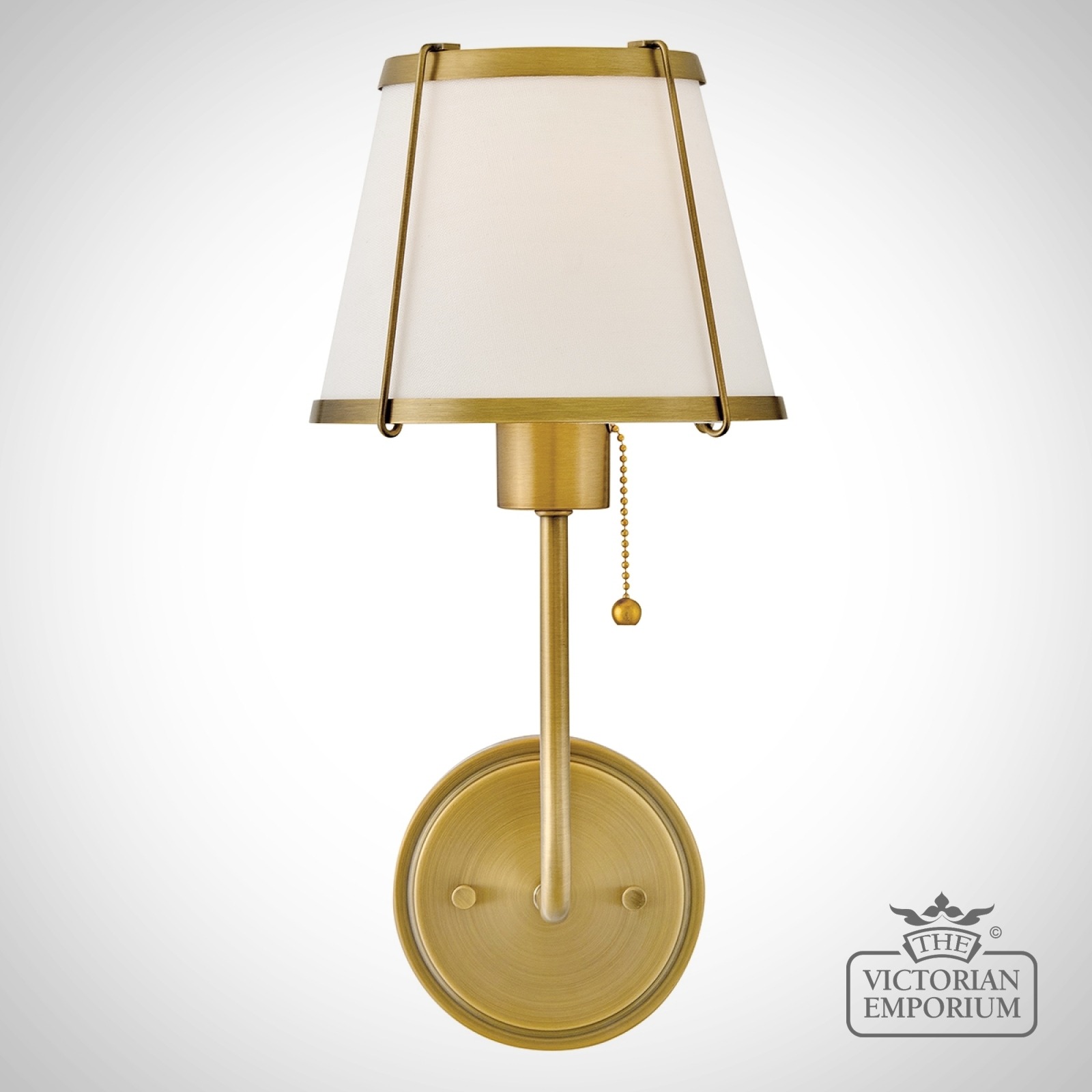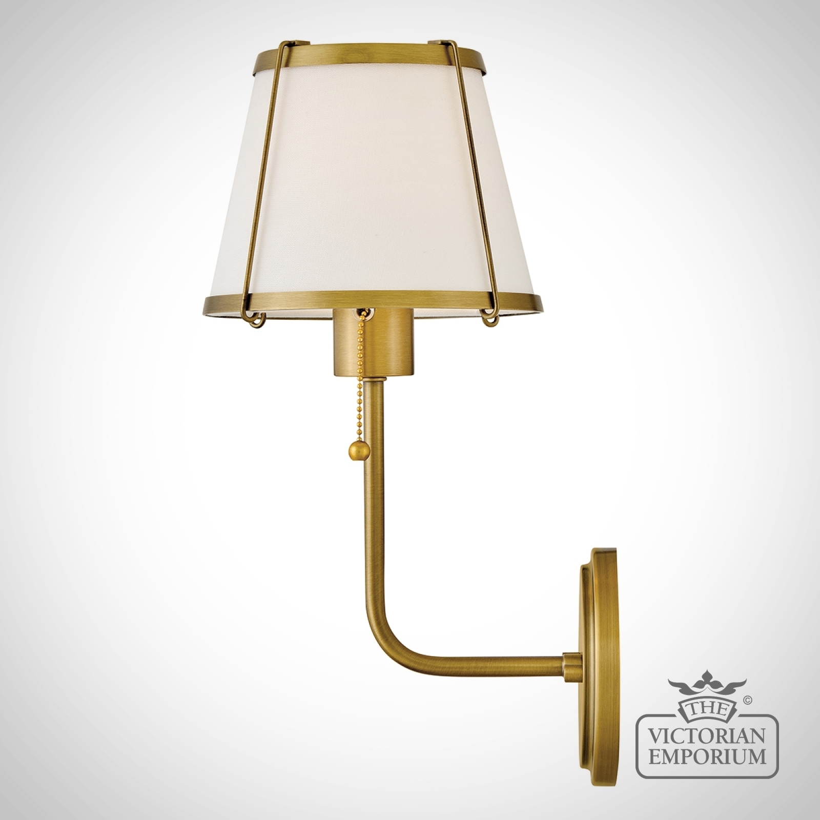 Clarke Wall Light with Pull switch - Darkened Brass & Ivory Linen Shade