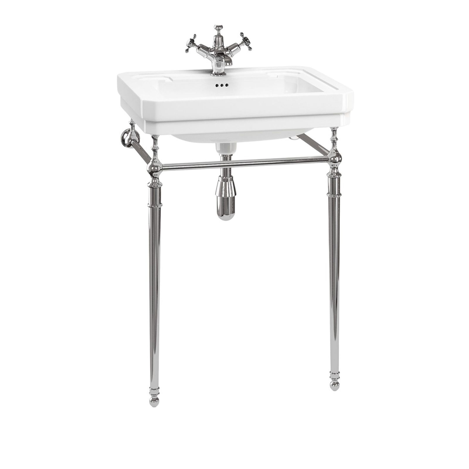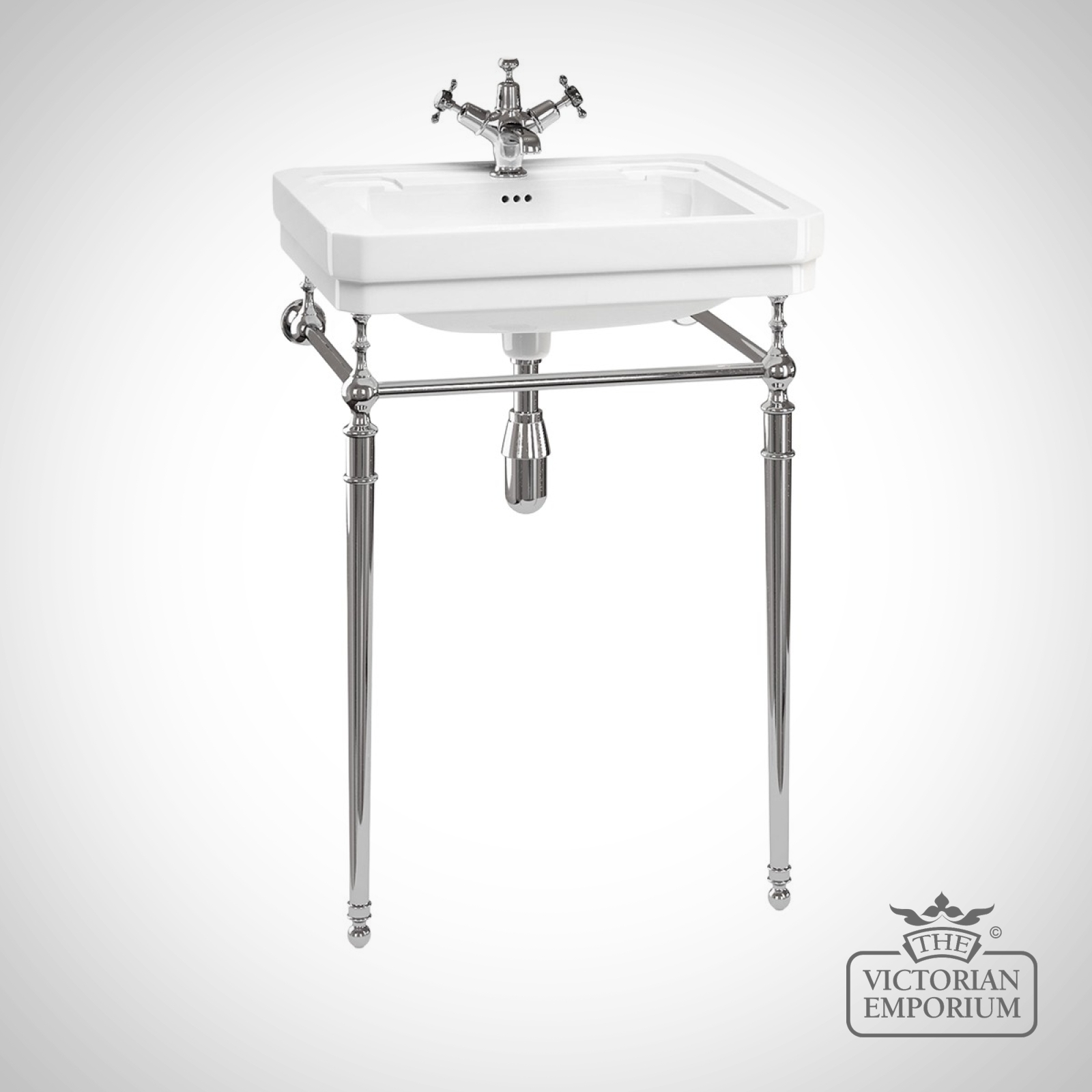 Made of Vitreous China and the washstand is made of brass and chrome plated
