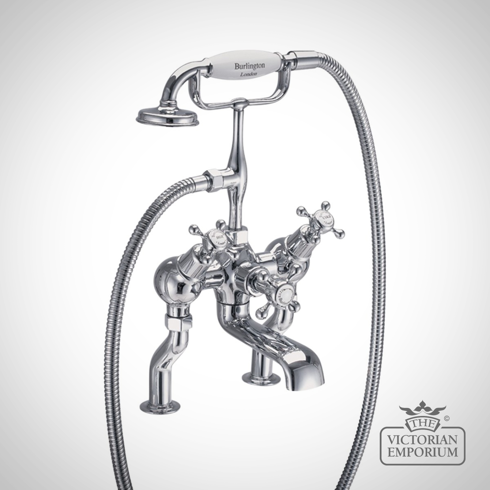 Bath shower mixer including the standard cradle, ‘S’ adjuster, ceramic diverter, hose, ceramic telephone handset, with tap heads, bases and unions