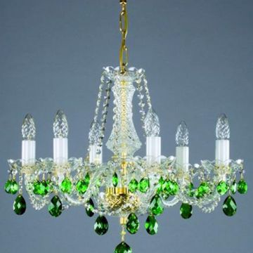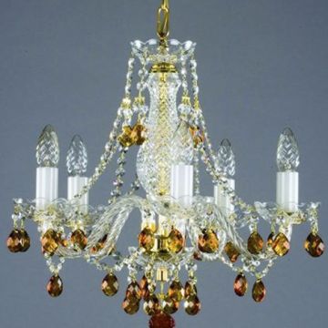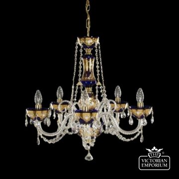 Lovely bohemian coloured crystal chandelier. Suitable for standard height ceilings and medium sized rooms