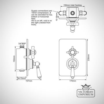 Concealed Dual Control Thermostatic Valve - 1 or 2 Outlets - in Chrome, Nickel or Copper