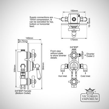 Concealed Thermostatic Valve With Integral flow Valves - in Chrome, Nickel or Copper