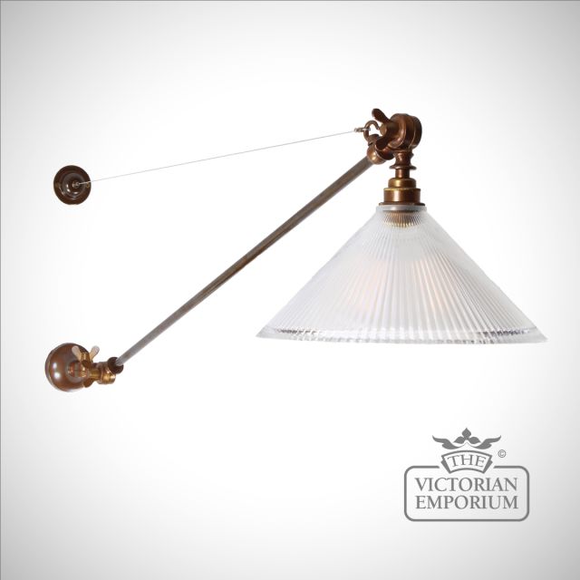 The Coolie Industrial Adjustable Wall Light allows you to direct light where you need by swinging the arm as you need it from right to left. The coolie glass shade head also can tilt up and down to adjust lighting in your interior.