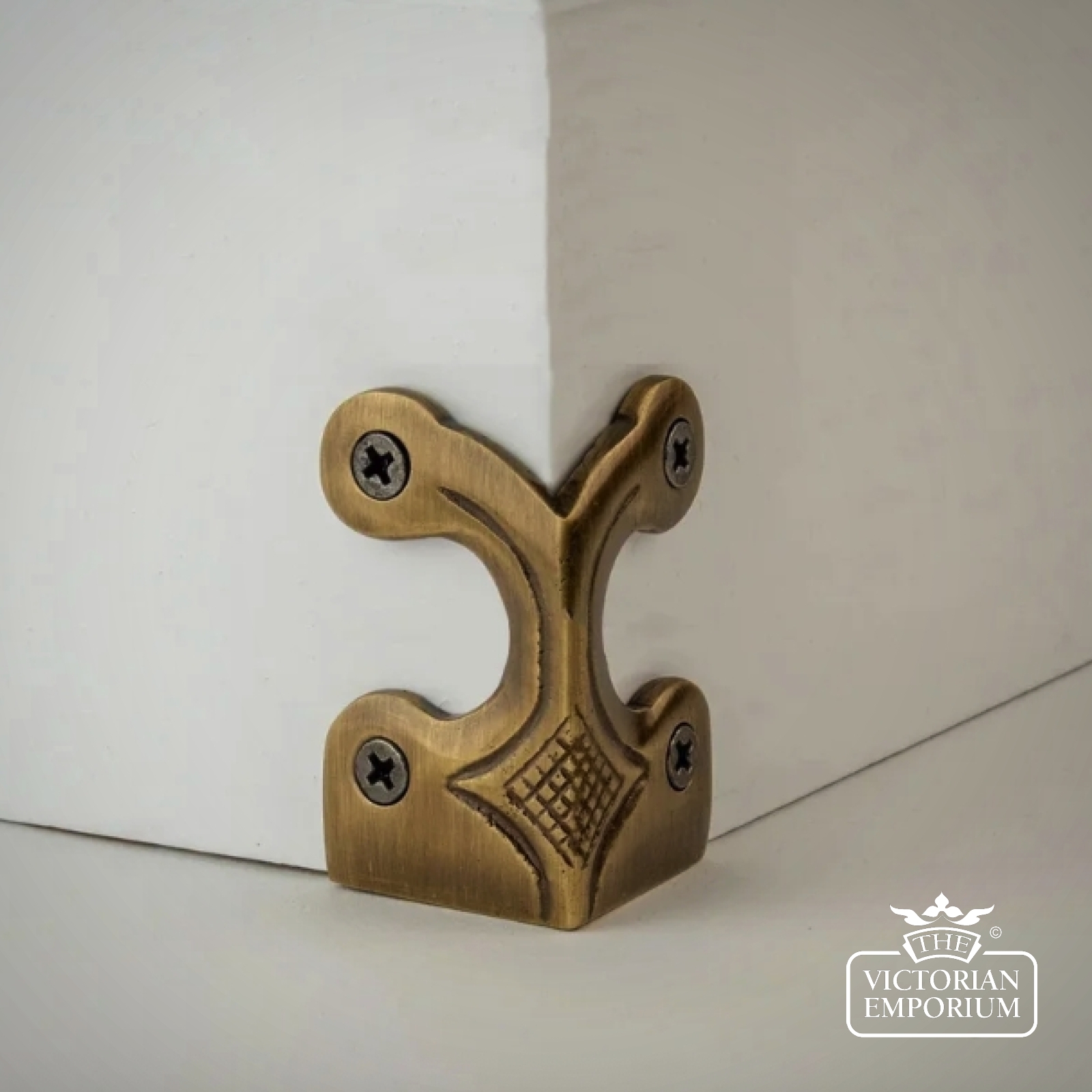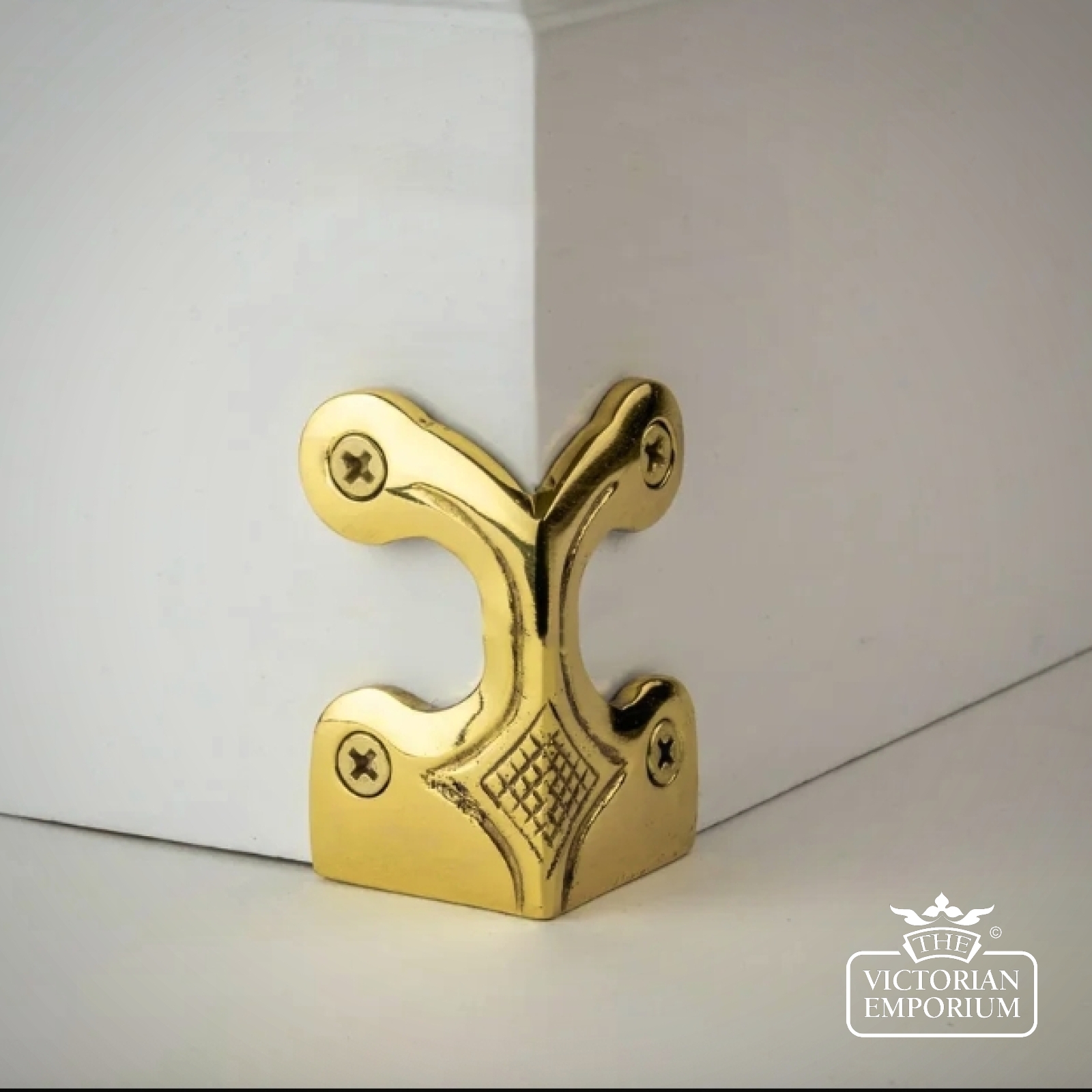 Skiffers or corner protectors are attractive solid brass castings designed to prevent damage to skirting boards and wall corners, an elegant and durable way to guard against scuffs and damage.