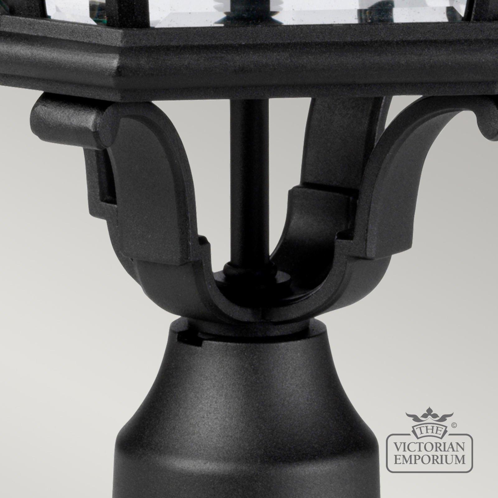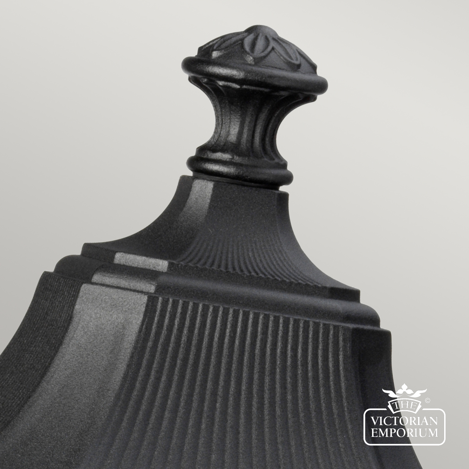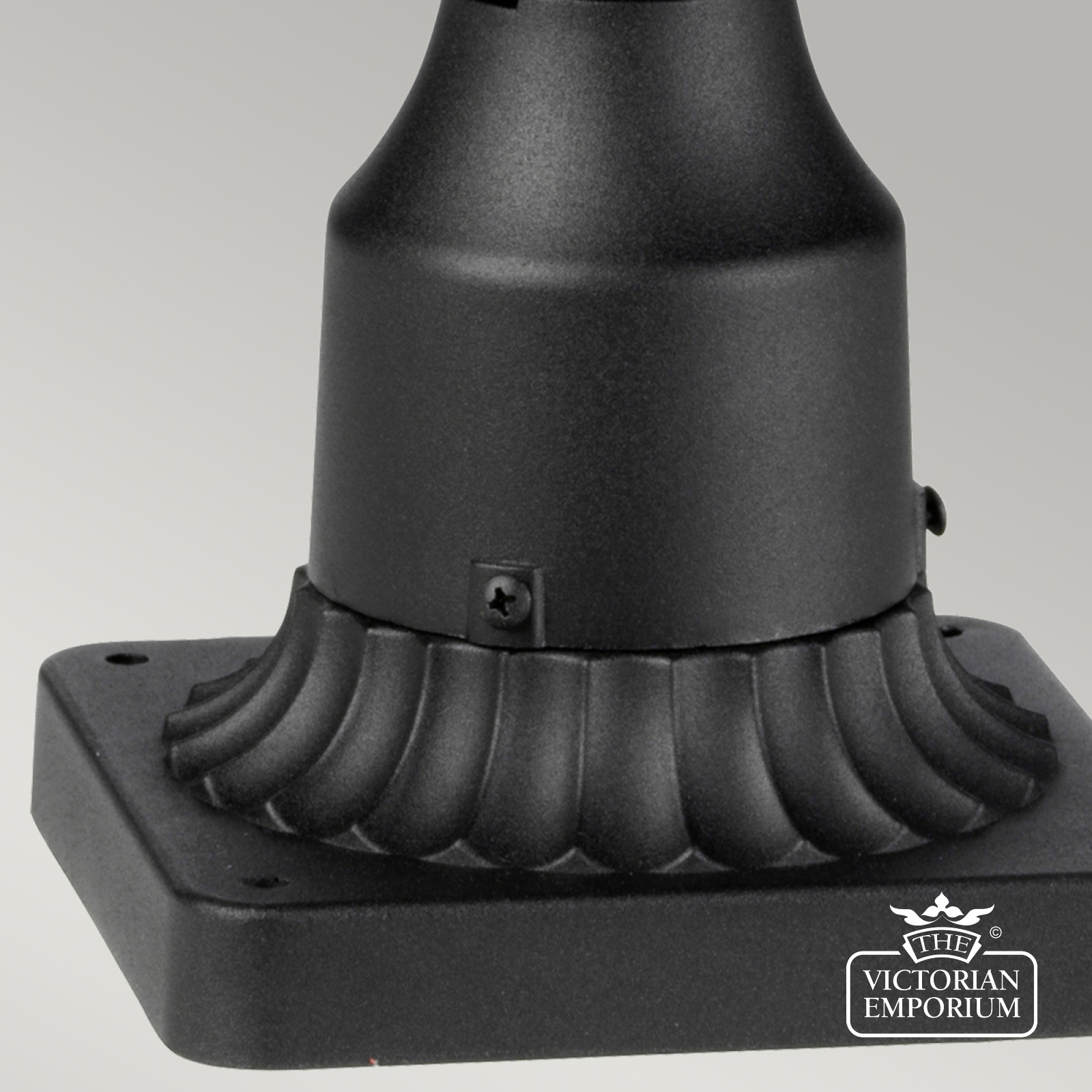 This a large pedestal, ideal for gate piers and posts. It’s classic styling gives a traditional feel to this antique gas lantern-inspired lantern. Die cast aluminium lanterns. Available in Bronze or Black
