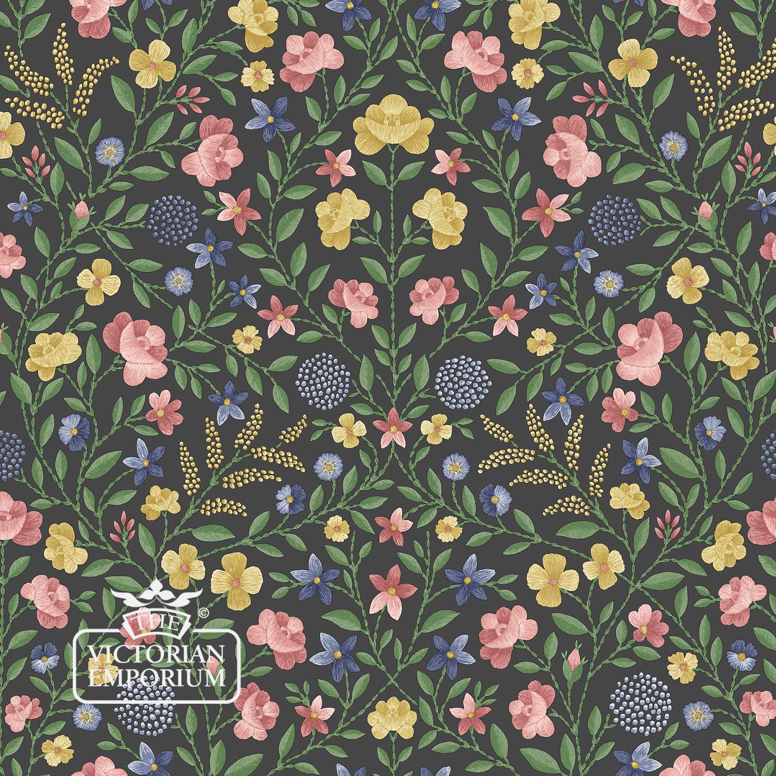 Delicately hand-painted to emulate silken hand stitches, Court Embroidery is inspired by an early 19th century waistcoat from the Royal Ceremonial Dress Collection. This courtier’s garment is a beautiful example of a time when gentlemen’s clothing was as fine, if not more elaborate, than those of a lady.