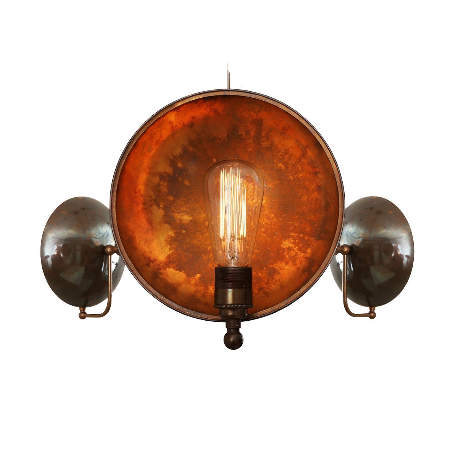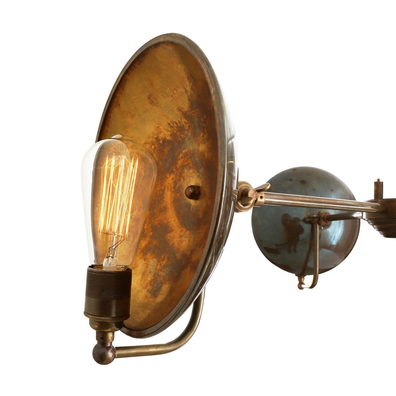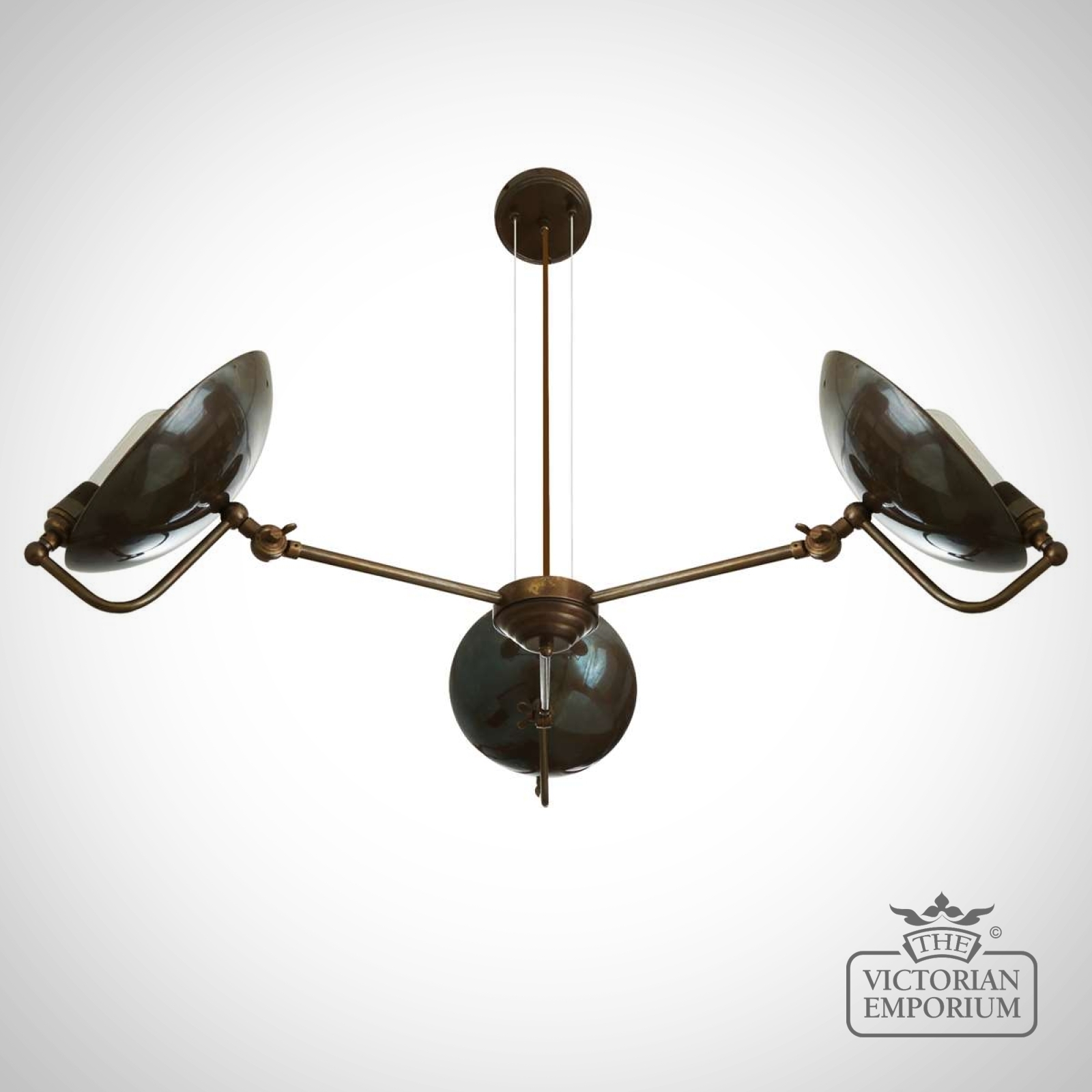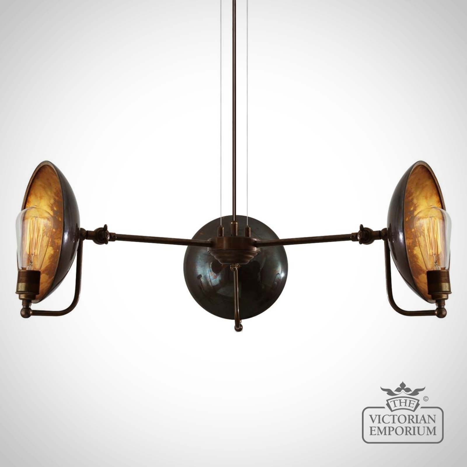 This industrial chandelier embodies the richness of the brass work. Looks fantastic when lit with Edison bulbs to create a dramatic warm reflection which changes depending on the position viewed. Bulbs are sold separately.