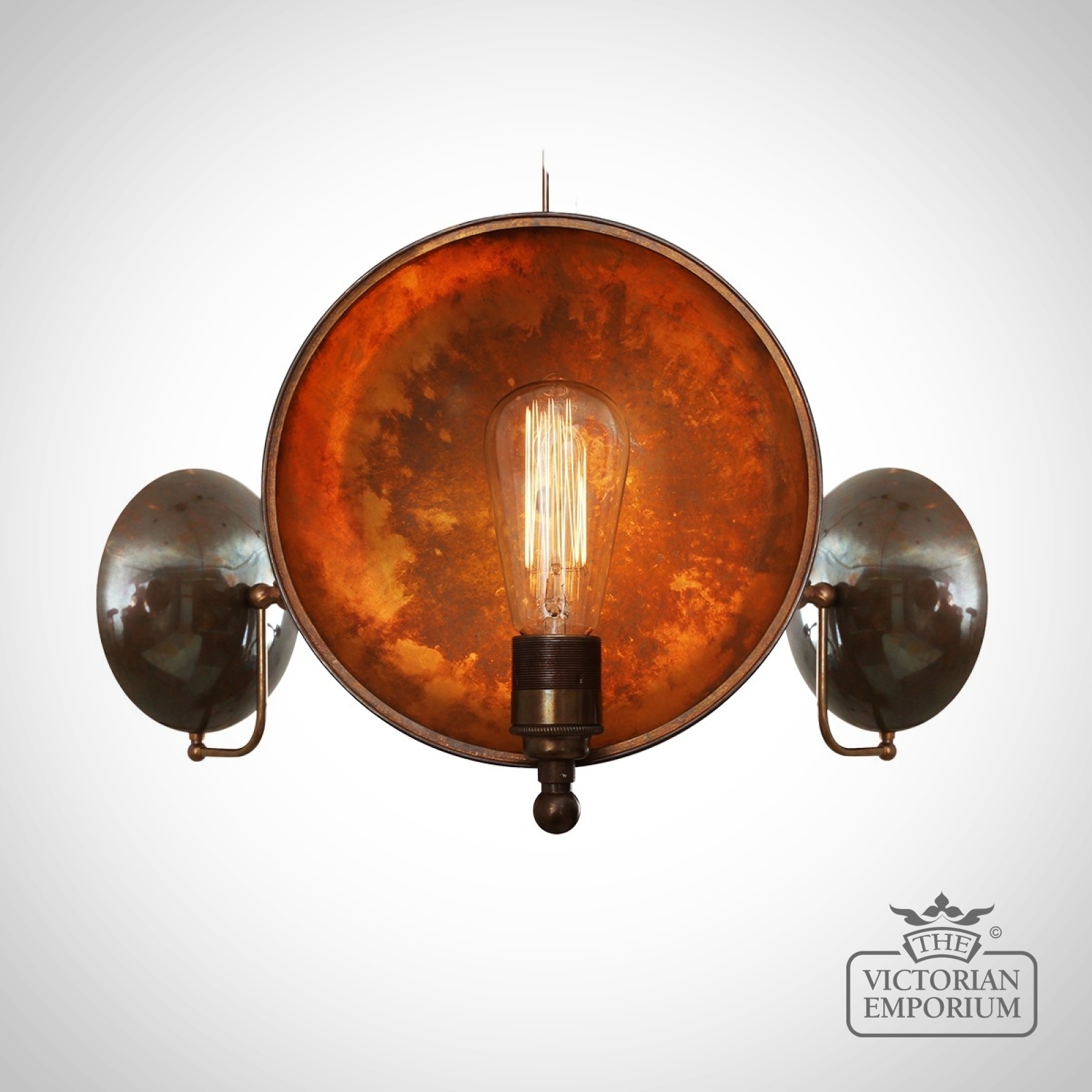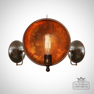 This chandelier is the perfect choice if you have a steampunk or industrial interior - it emanates warmth through its shadowed patinated back plate