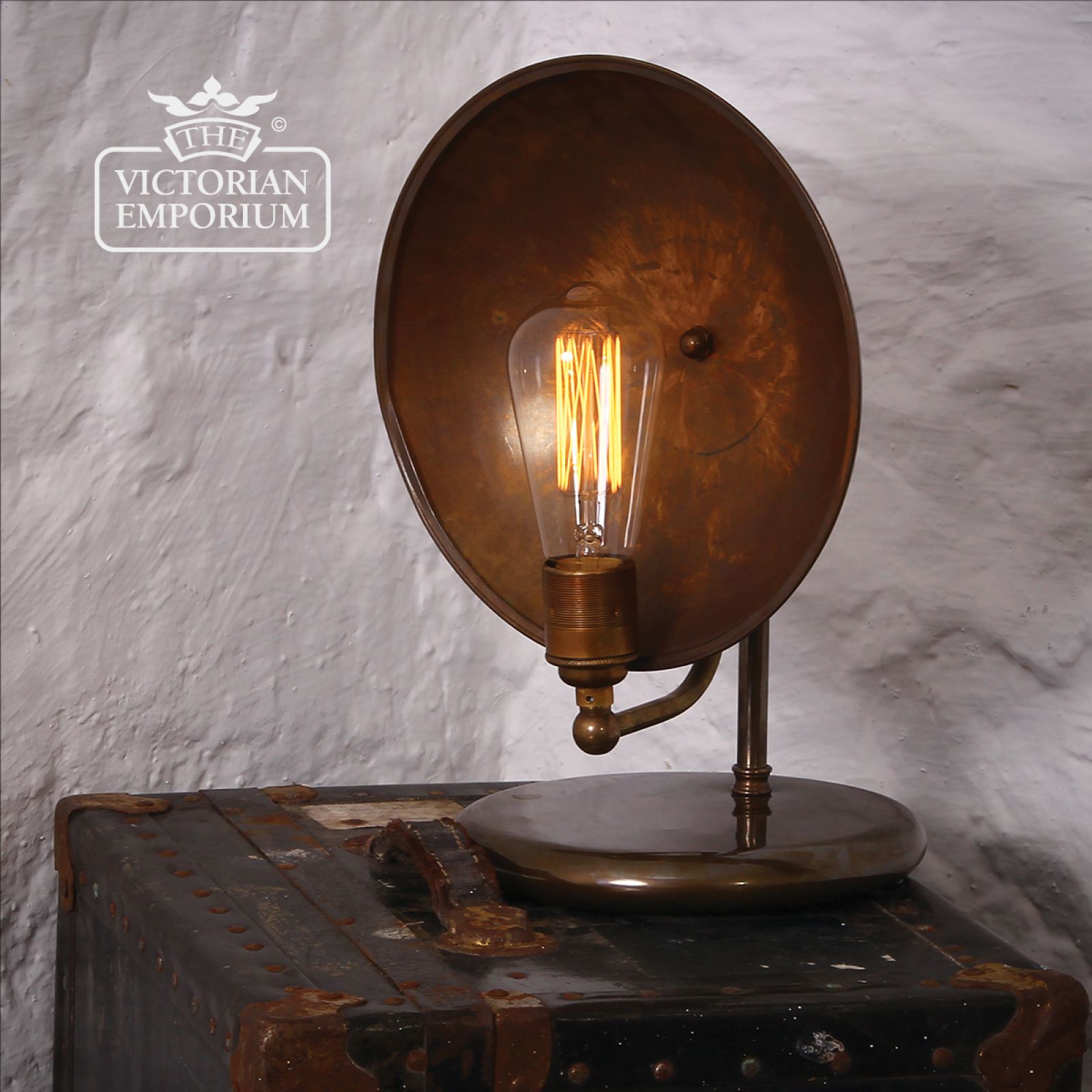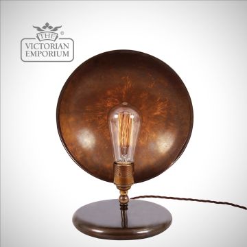 The stand out feature of this vintage style lamp is no doubt its vertical back plate shade with an aged patinaed industrial finish. Looks fantastic when lit with an Edison filament bulb.