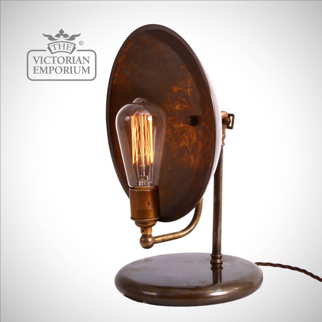 The stand out feature of this vintage style lamp is no doubt its vertical back plate shade with an aged patinaed industrial finish. Looks fantastic when lit with an Edison filament bulb.