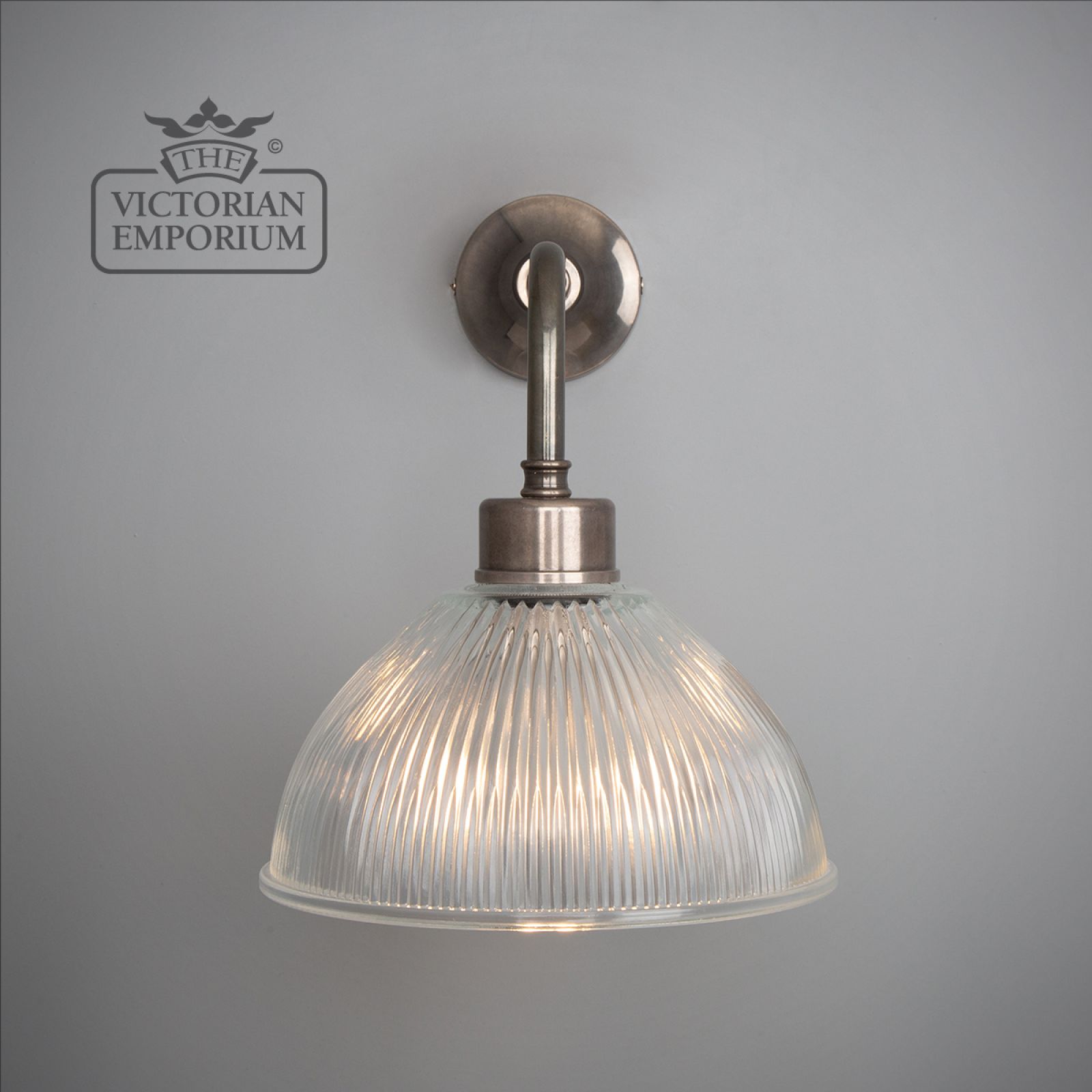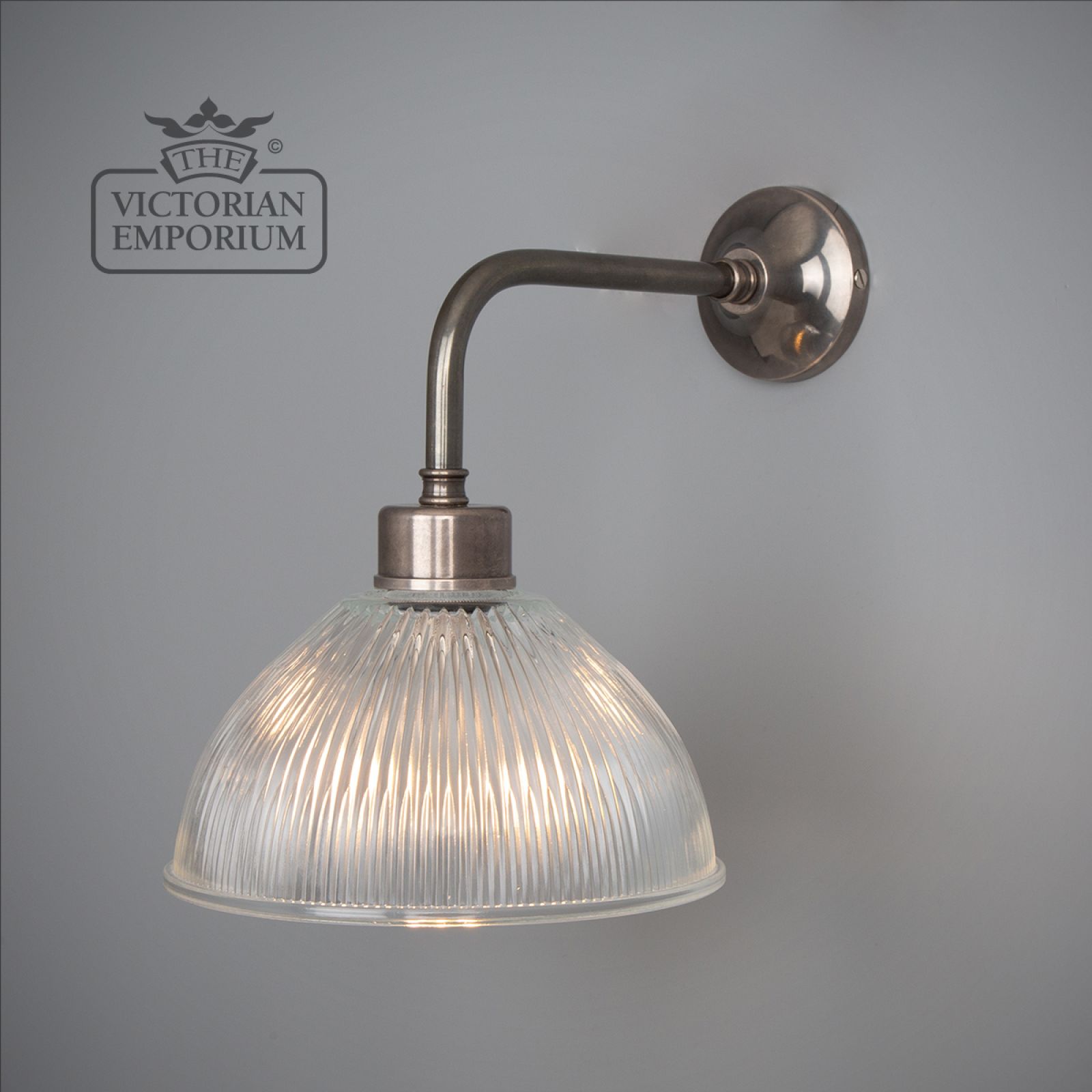 The Daka Prismatics Wall Light is made of a moulded prismatic glass shade that sparkles and refracts light, providing a source of even, glare-free lighting.