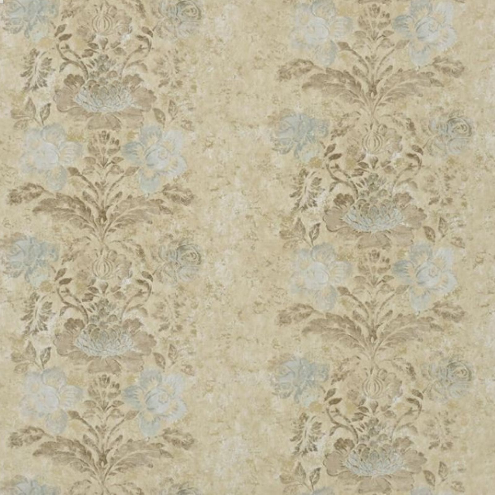 An exquisite fresh damask fabric inspired by the antique floral frescos offering subtlety and intrigue of pattern Metallic accents