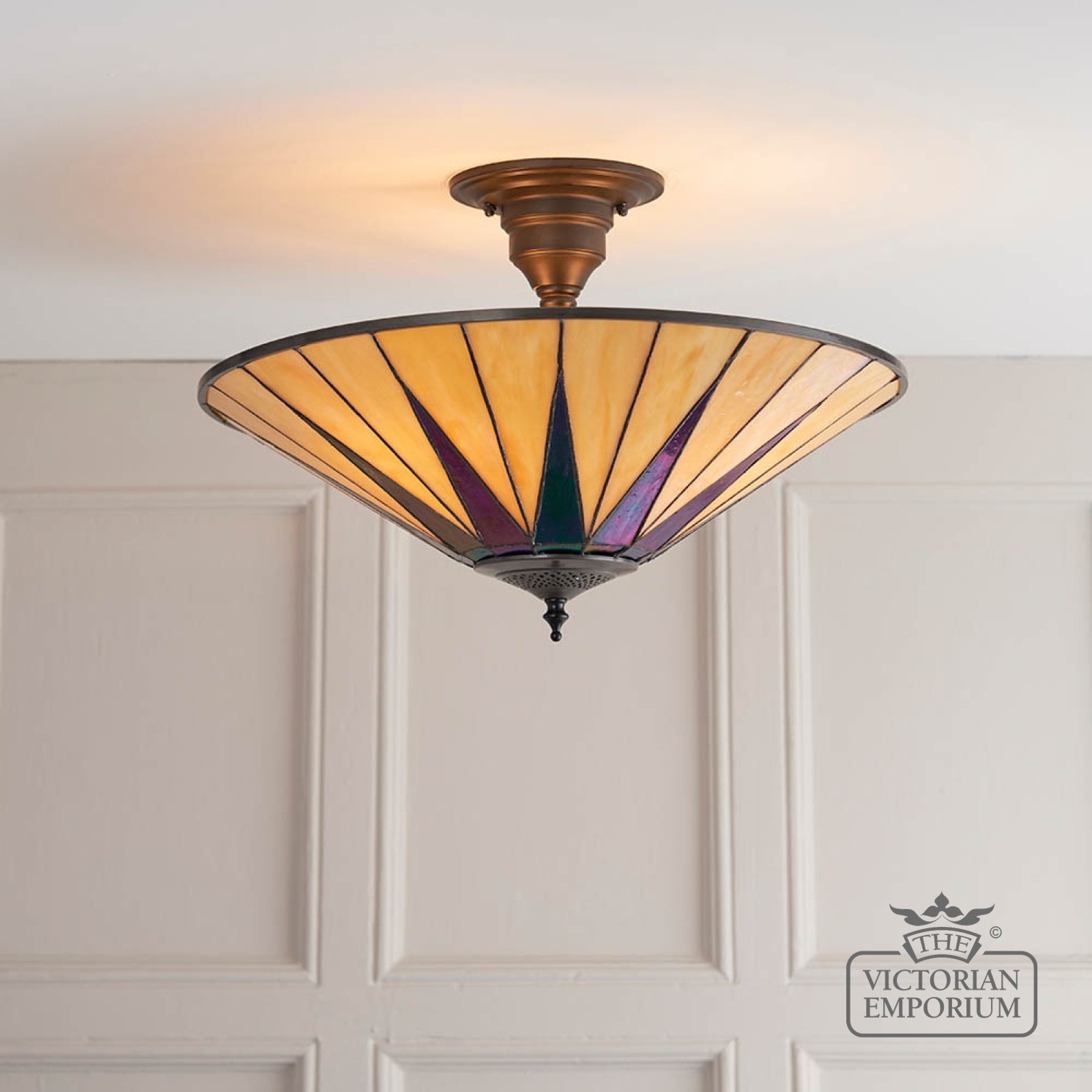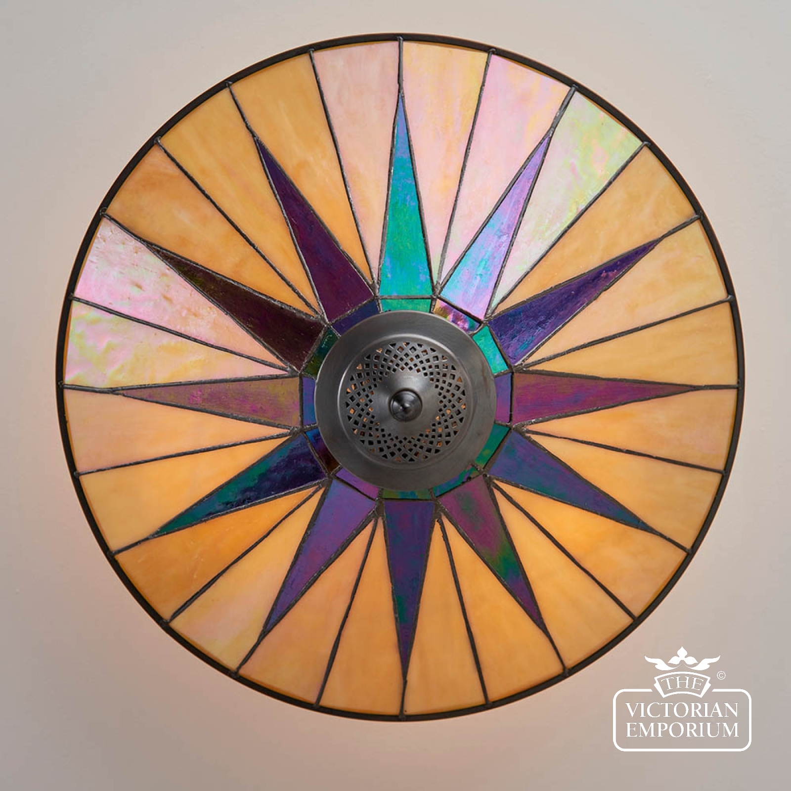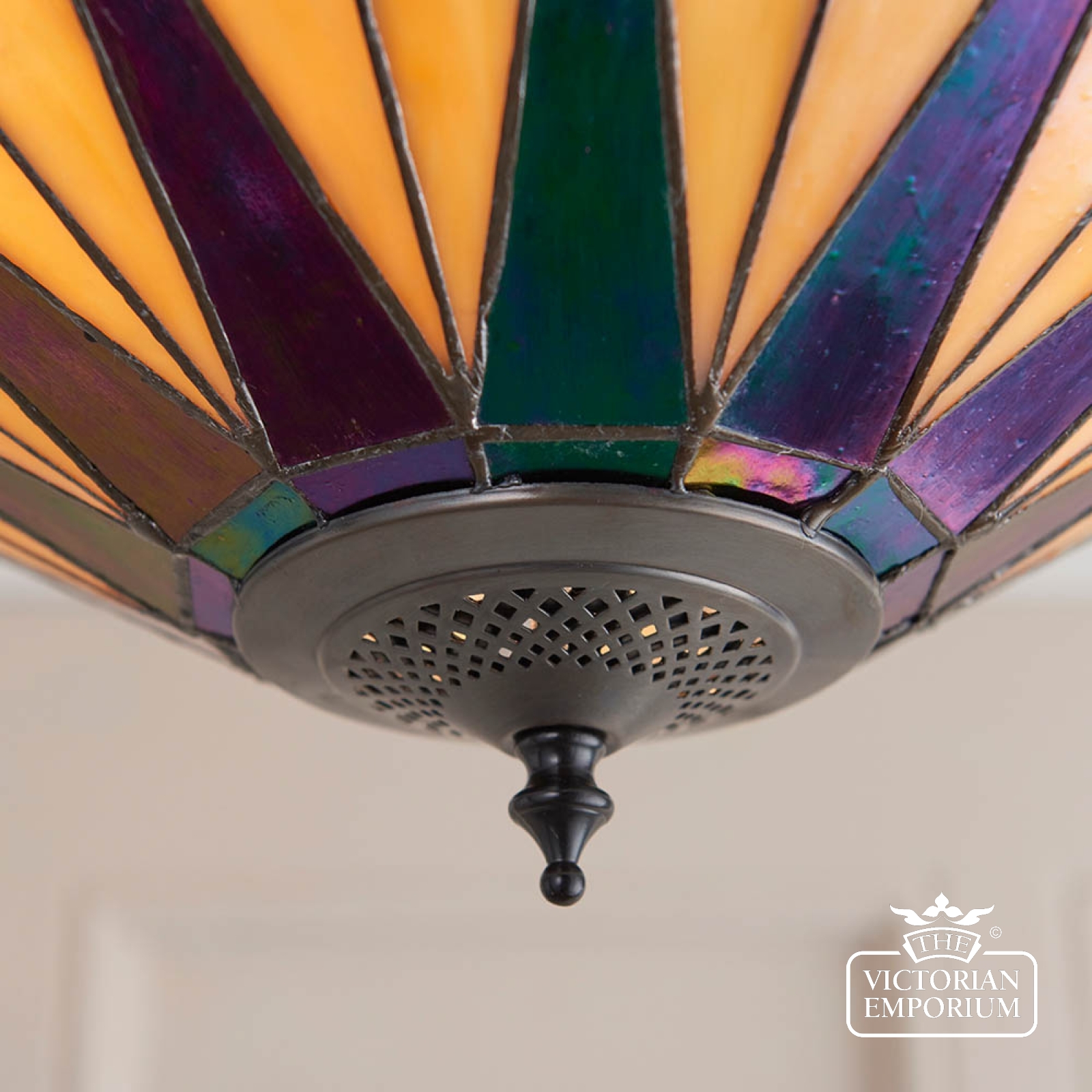 Tiffany glass & dark bronze with highlights.