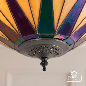 The eye catching Dark Star semi flush light is designed with iridescent black glass against pearly cream glass
