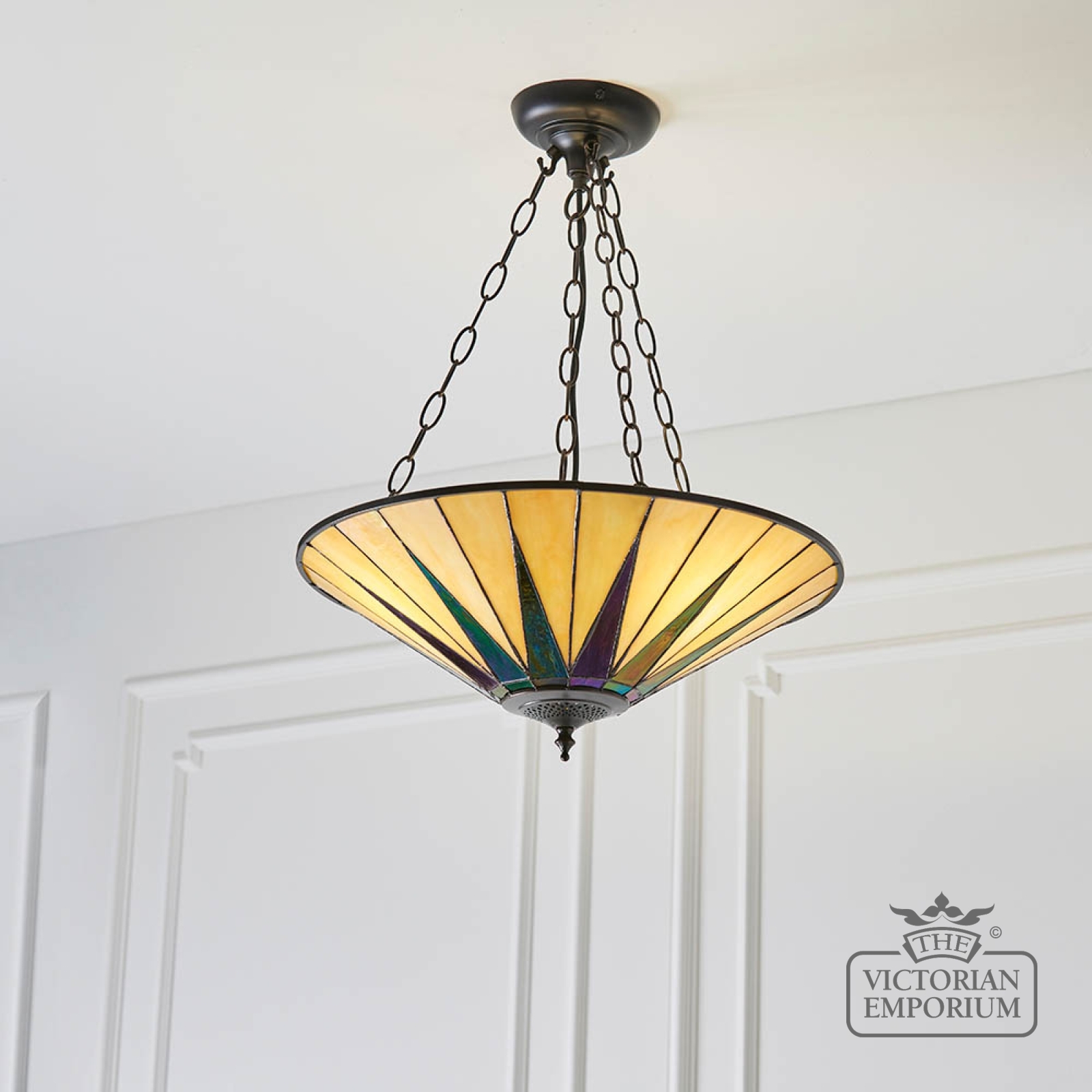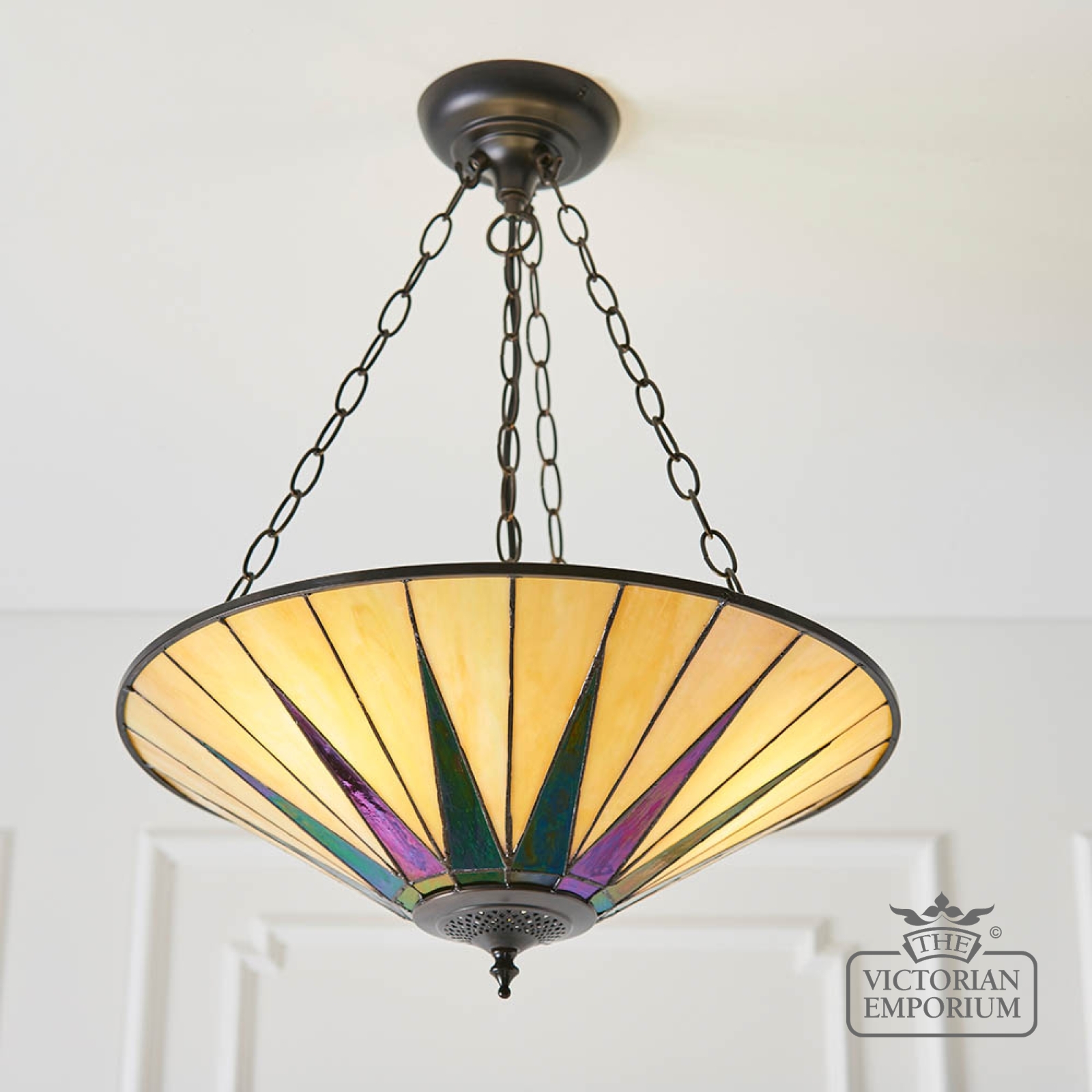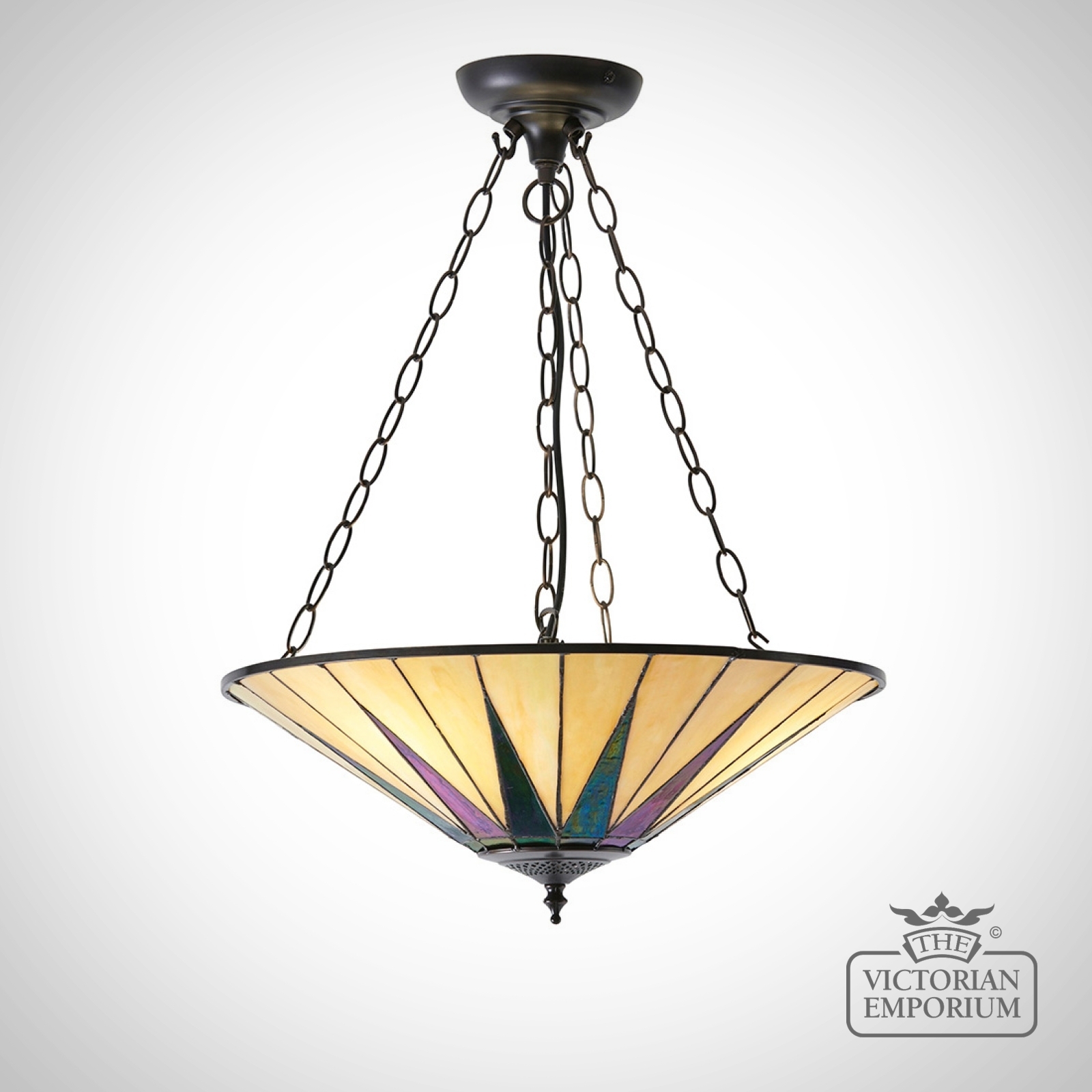 Tiffany glass & dark bronze with highlights.