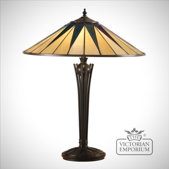 The eye catching Dark Star large table light is designed with iridescent black glass against pearly cream glass