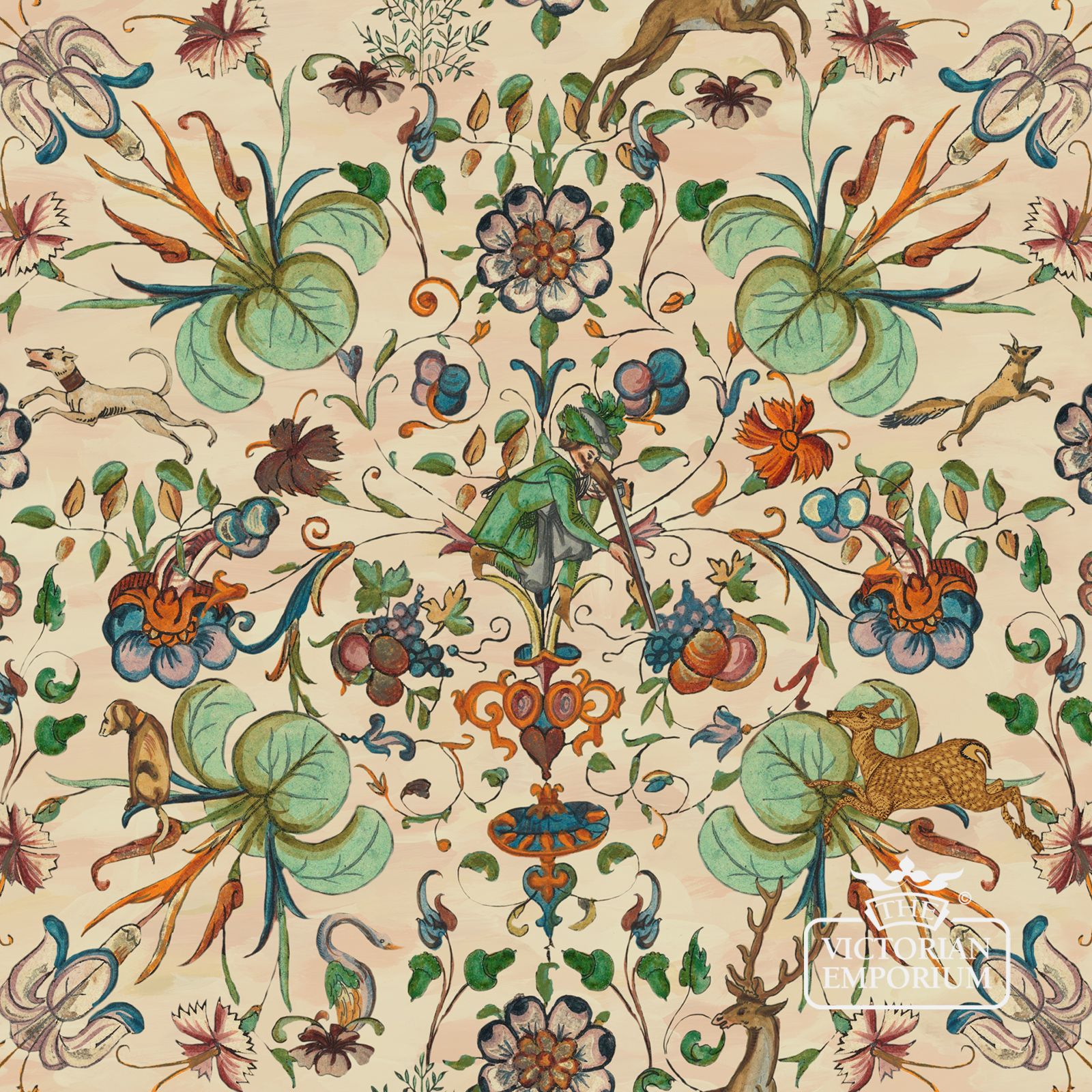 Unfortunately the product Deer Stalker Wallpaper - featuring symmetrical foliage, delicate flowers, leaping deer and dogs isn't available at this time.
