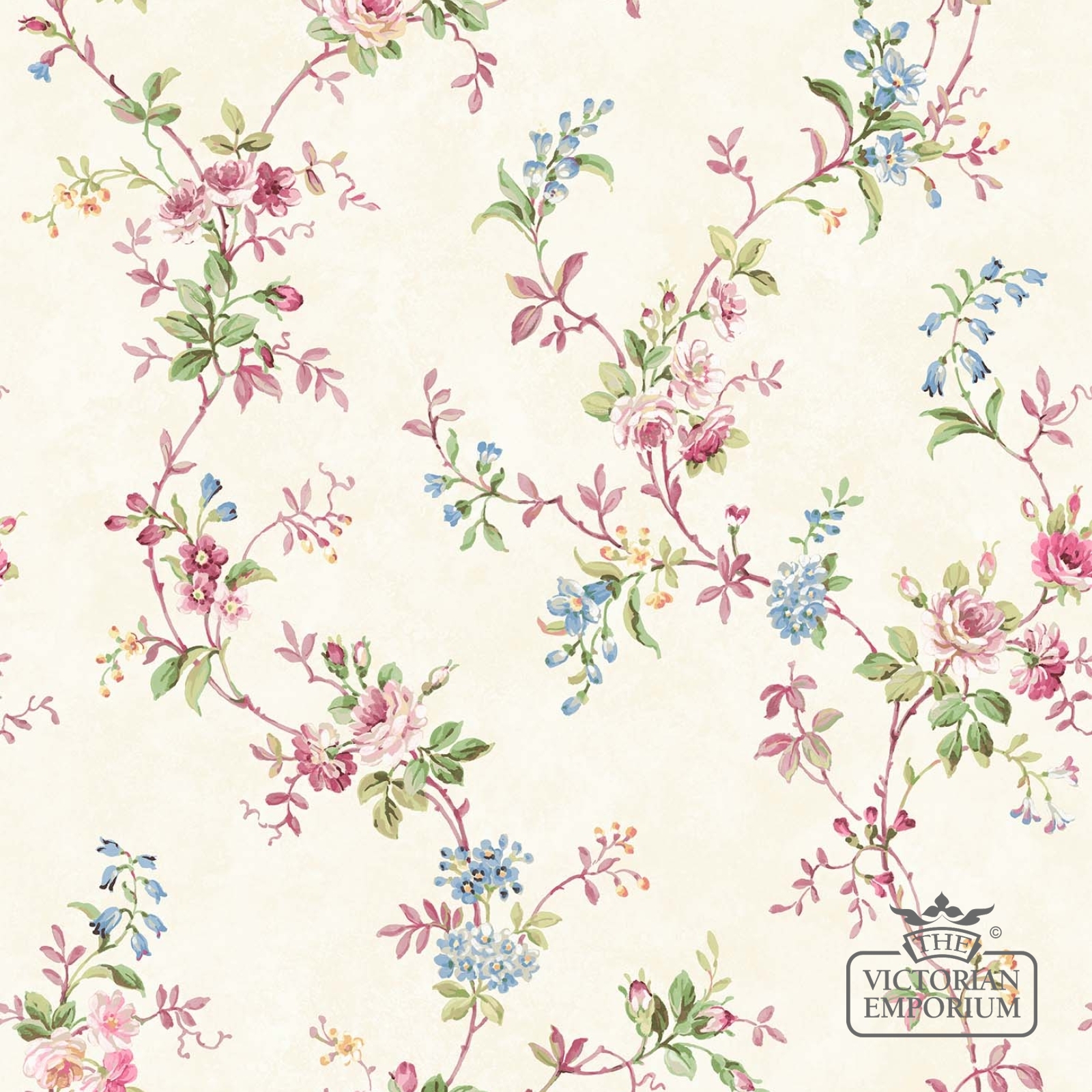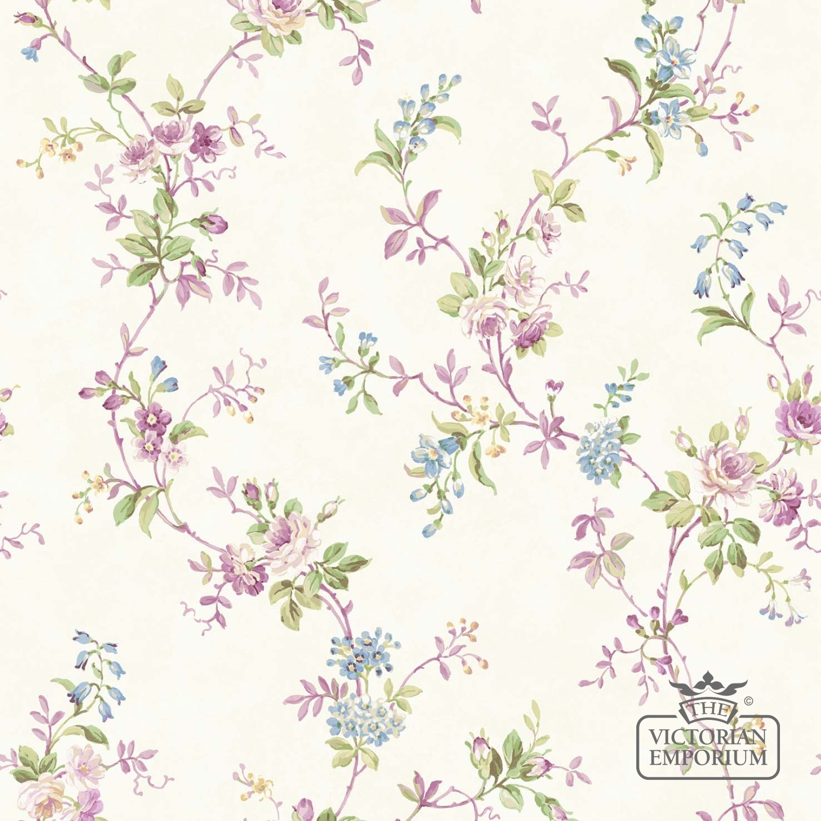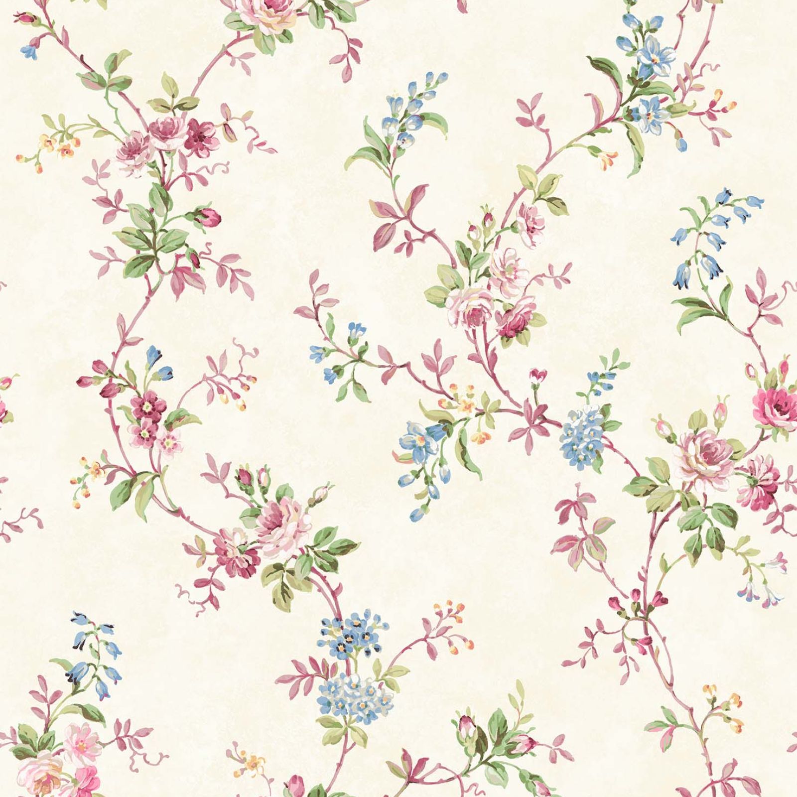 A pretty wallpaper featuring delicate flowers in various shades on pale backgrounds This design would be suitable for a whole bedroom or a feature wall. It's a very delicate pretty design.