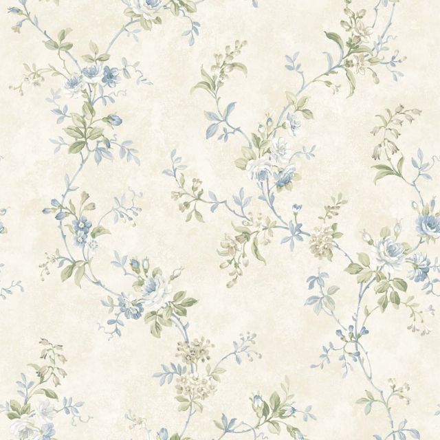 A pretty wallpaper featuring delicate flowers in various shades on pale backgrounds This design would be suitable for a whole bedroom or a feature wall. It's a very delicate pretty design.