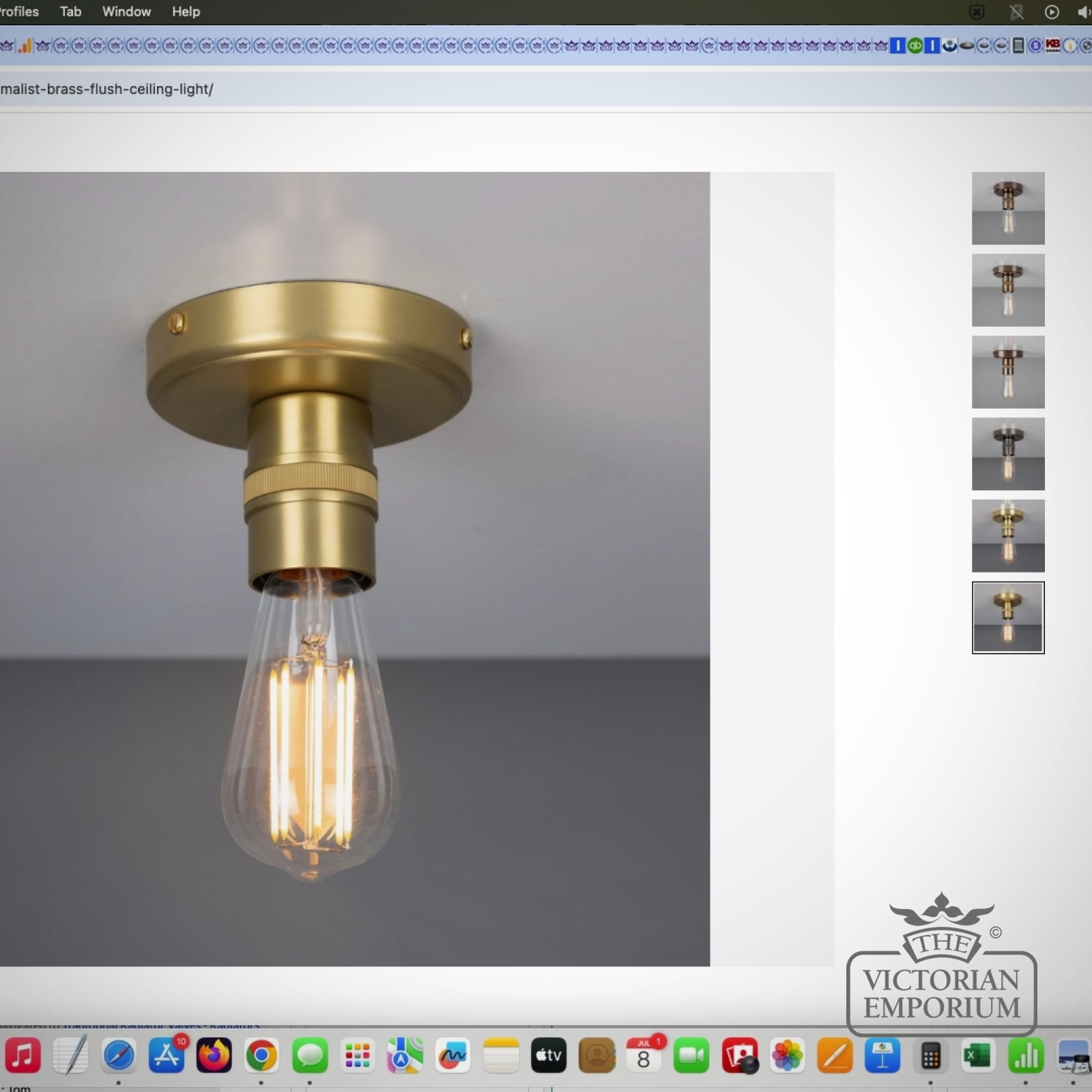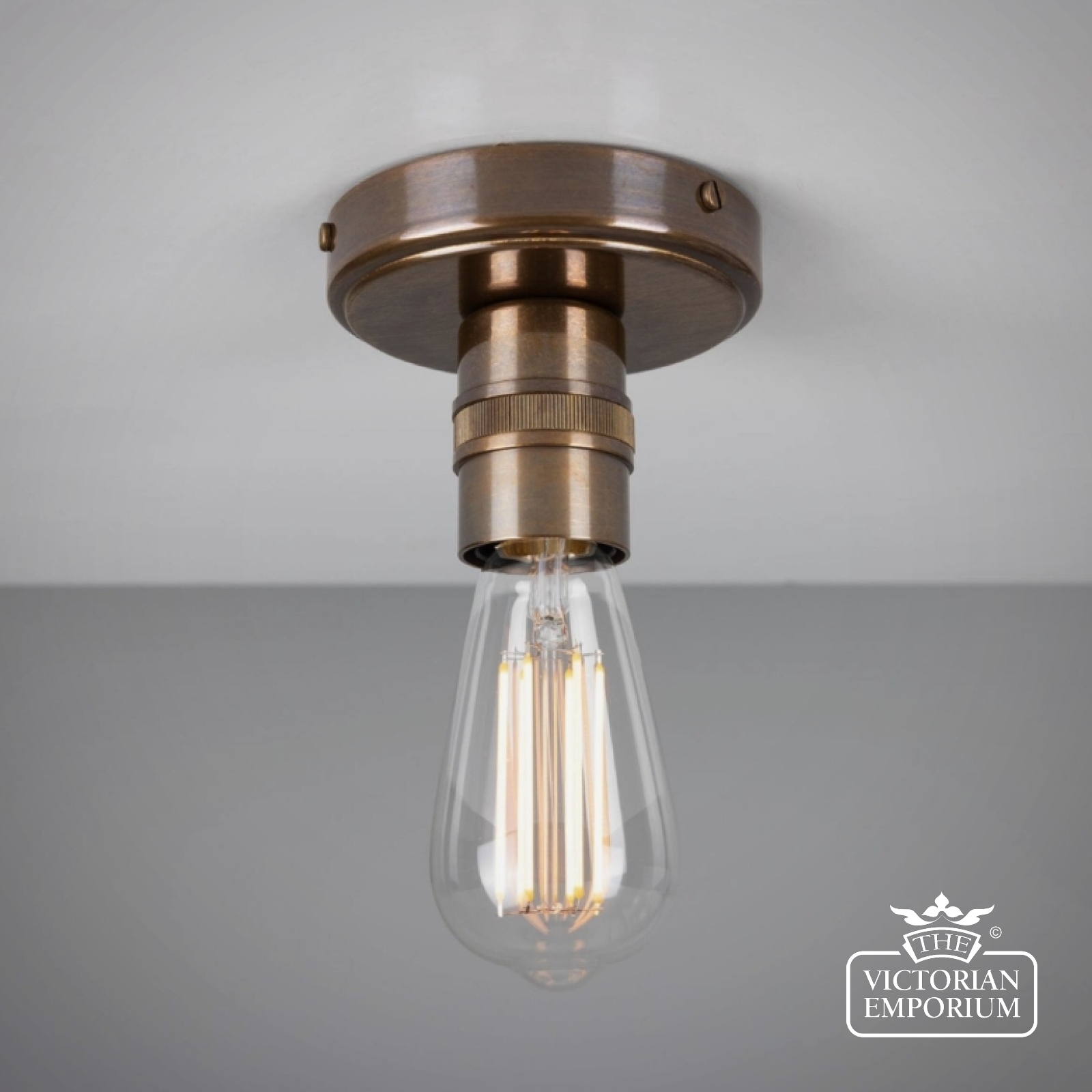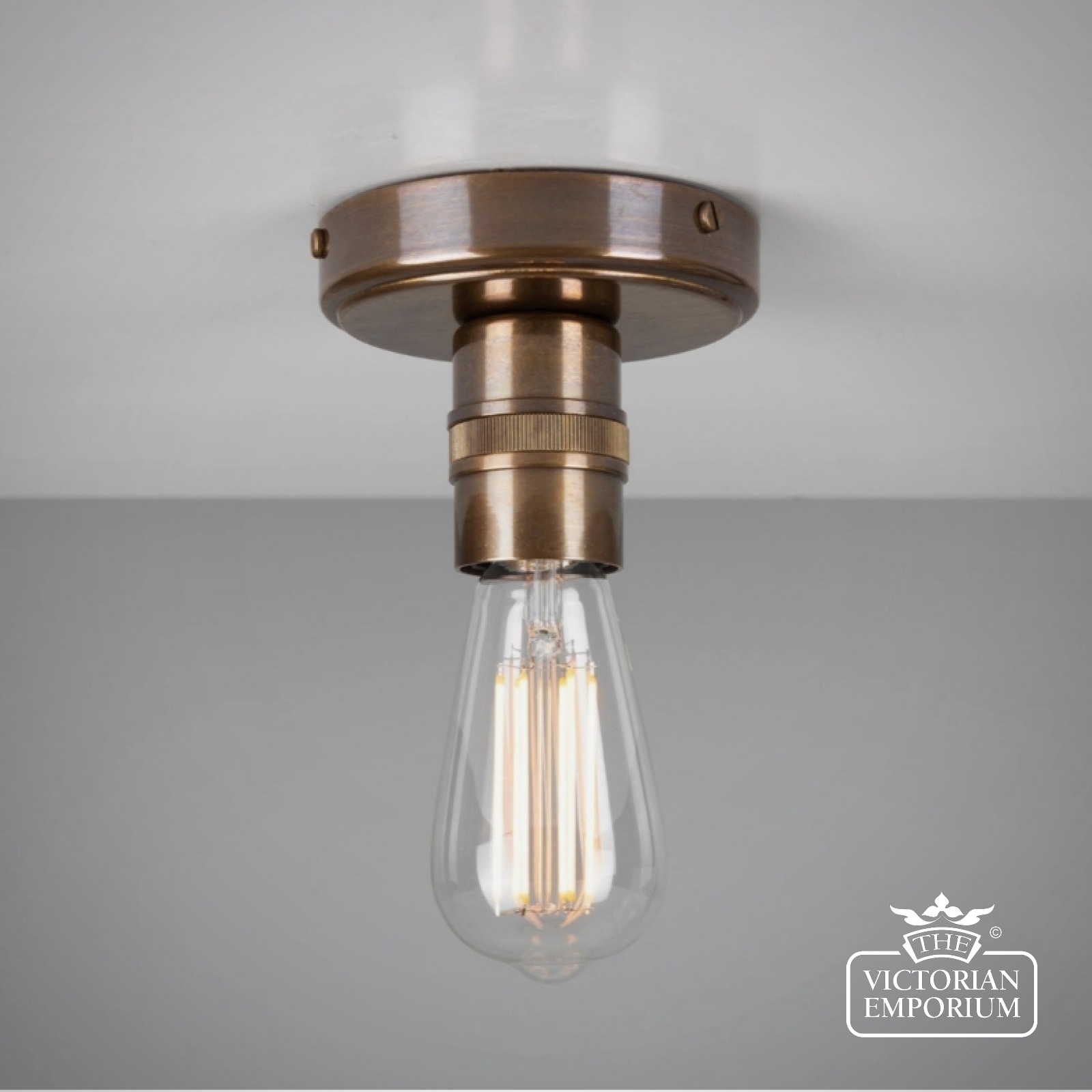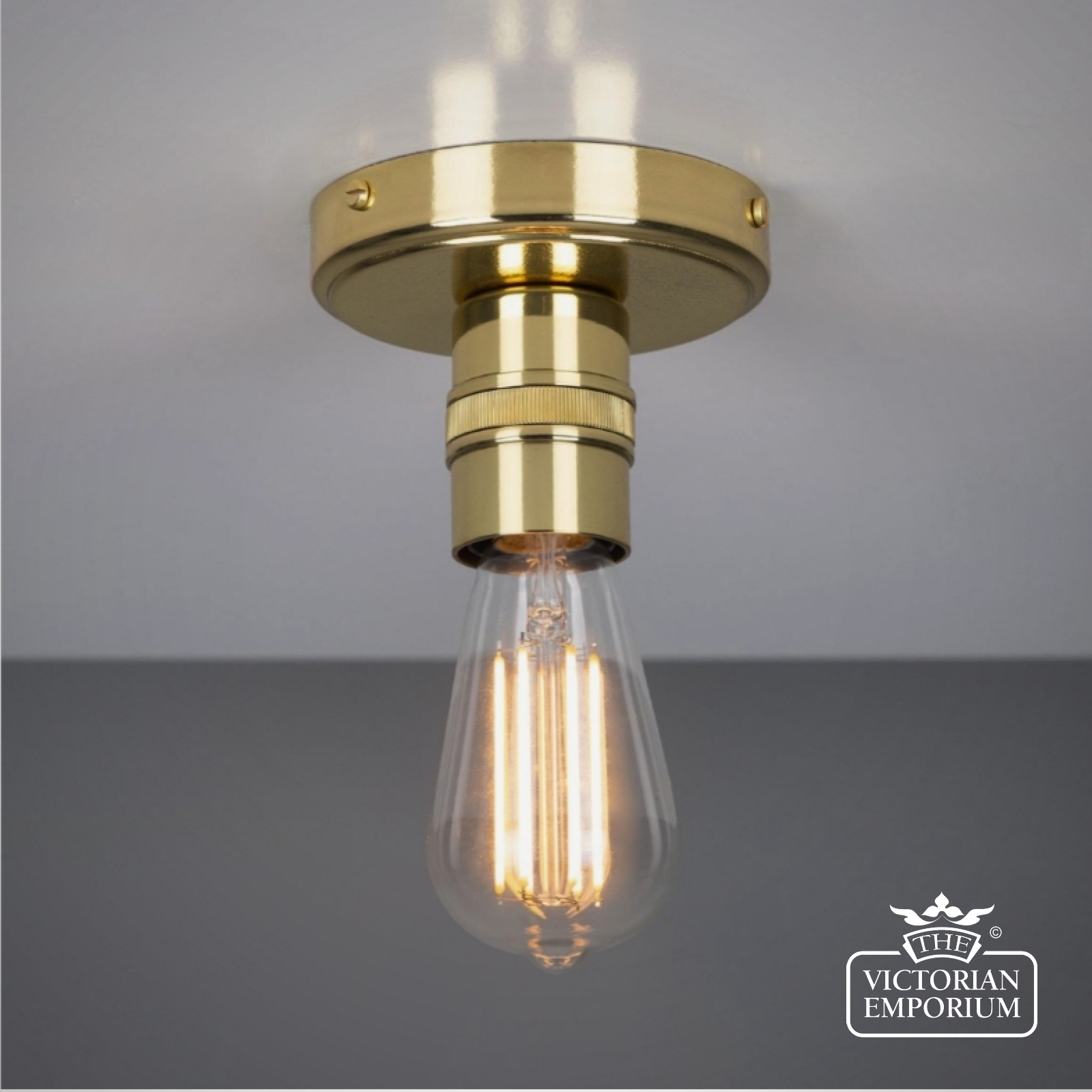 Embracing the minimalist aesthetic, the Devon flush ceiling light features a simple brass ceiling rose and matching lamp holder.