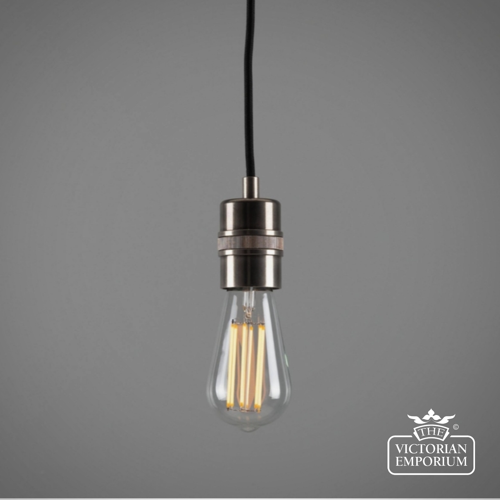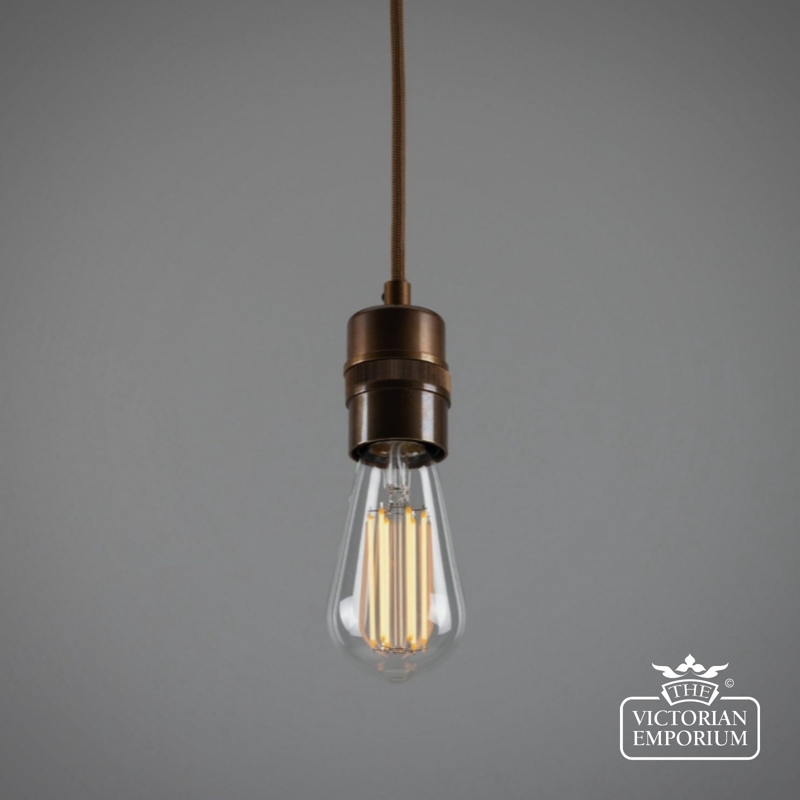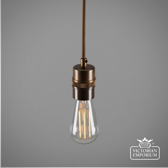 The Devon pendant can accommodate shades of different sizes. Inside its brass casing is a plastic E27 lamp holder.