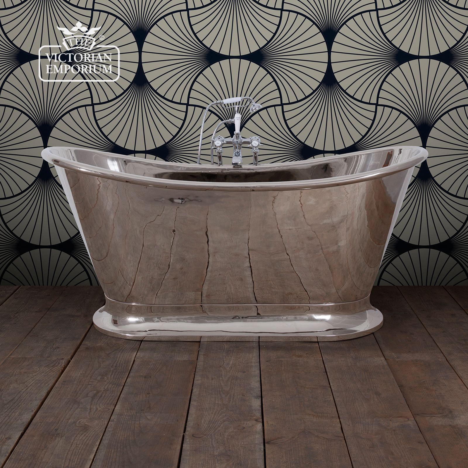 The Dietrich has a high silver sheen that catches the light for a radiant effect. It is made entirely from high gauge copper and plated in nickel inside and out, it is then highly polished giving each bath a unique hand finished look.
