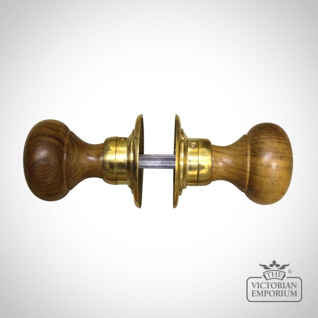 Stunning brass door knob with teak handle. Very traditional period style for internal doors in your house.