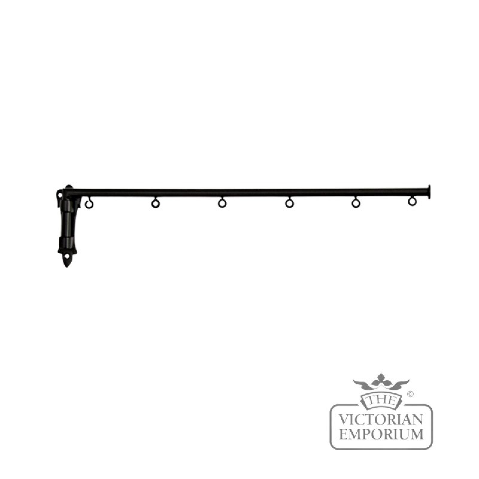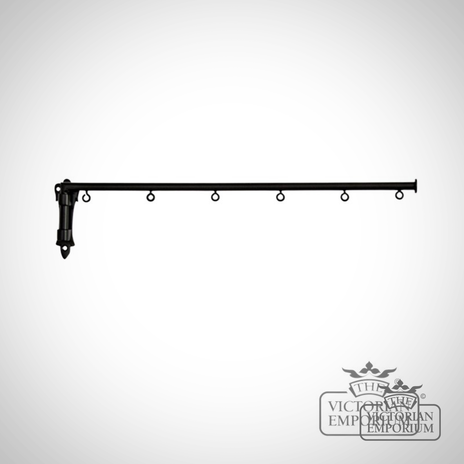 A swing arm curtain rod is perfect for use on dormer windows so that the curtains can swing open. These arms are made from wrought iron. The price is for an arm up to 1 metre in length. The arm can be supplied with or without eyes