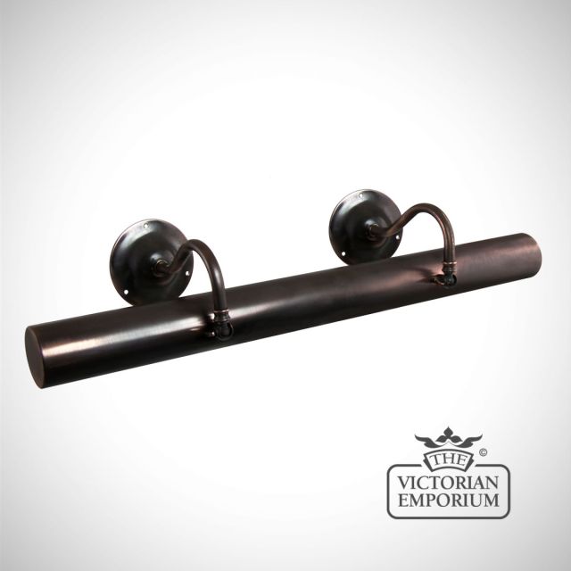 Double width brass picture light available in antique bronze, polished copper, distressed brass or polished brass finish