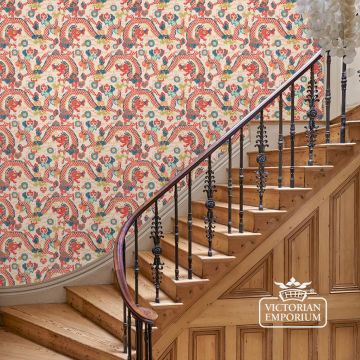 A Beautiful and authentic design, this intricate mirrored wallpaper features classic dragons. A charming wallpaper, presented in a contemporary colour palette that oozes quiet sophistication.