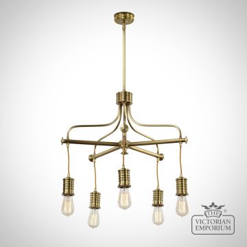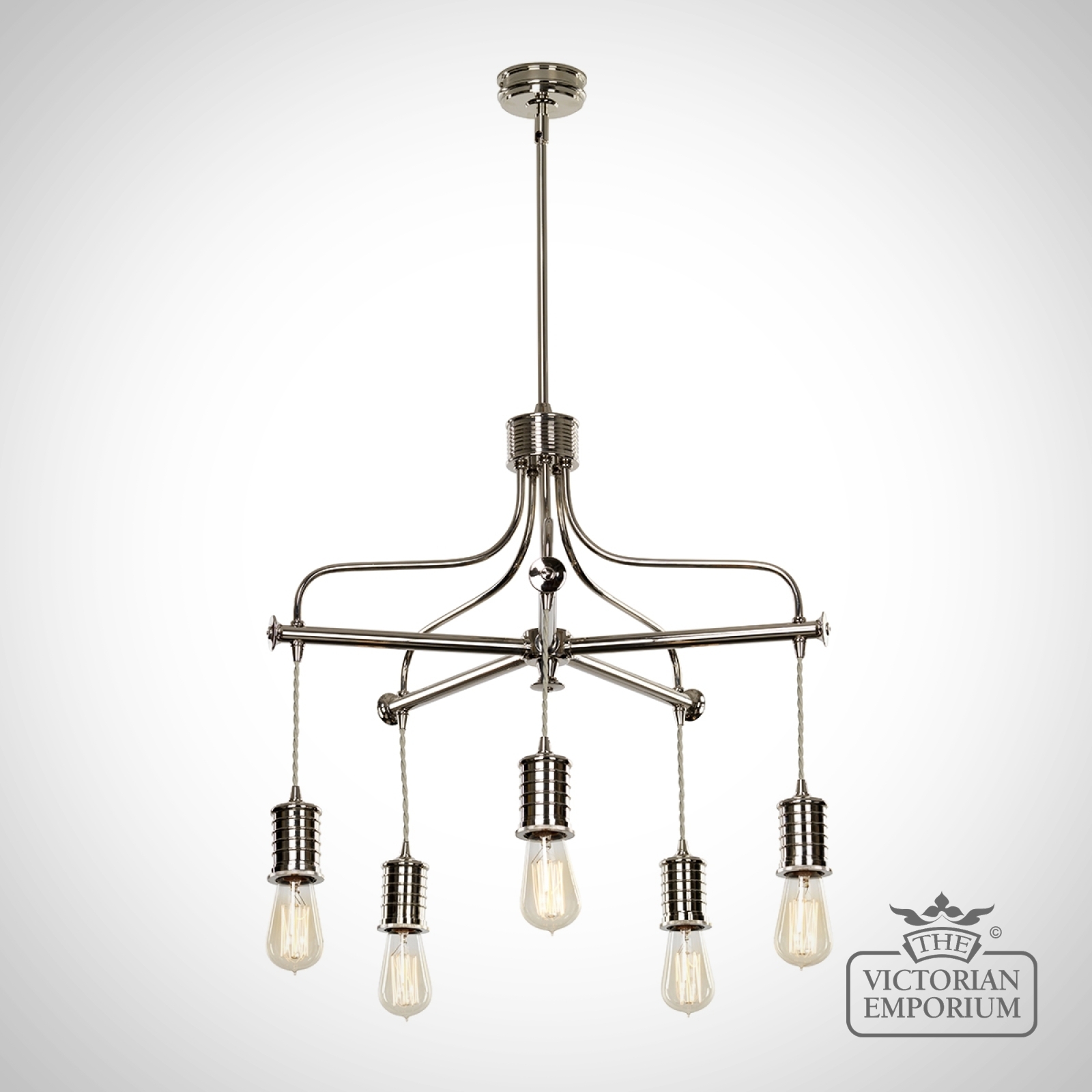Polished Nickel 5 light chandelier chandelier ceiling light, ideal for a vintage industrial look
