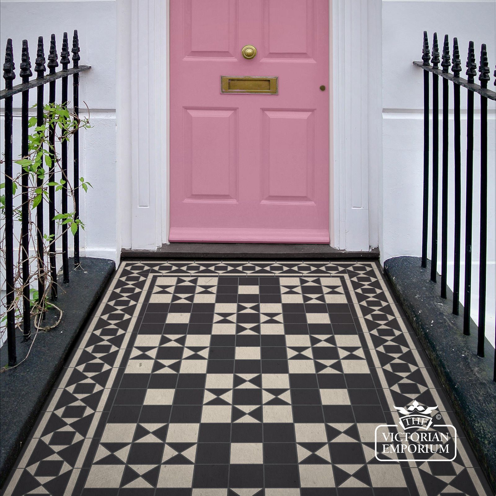 Victorian mosaic pattern tiles in a Victorian colour pallet - sold by the sheet. Dover pattern border tiles design matches Dover inset tiles