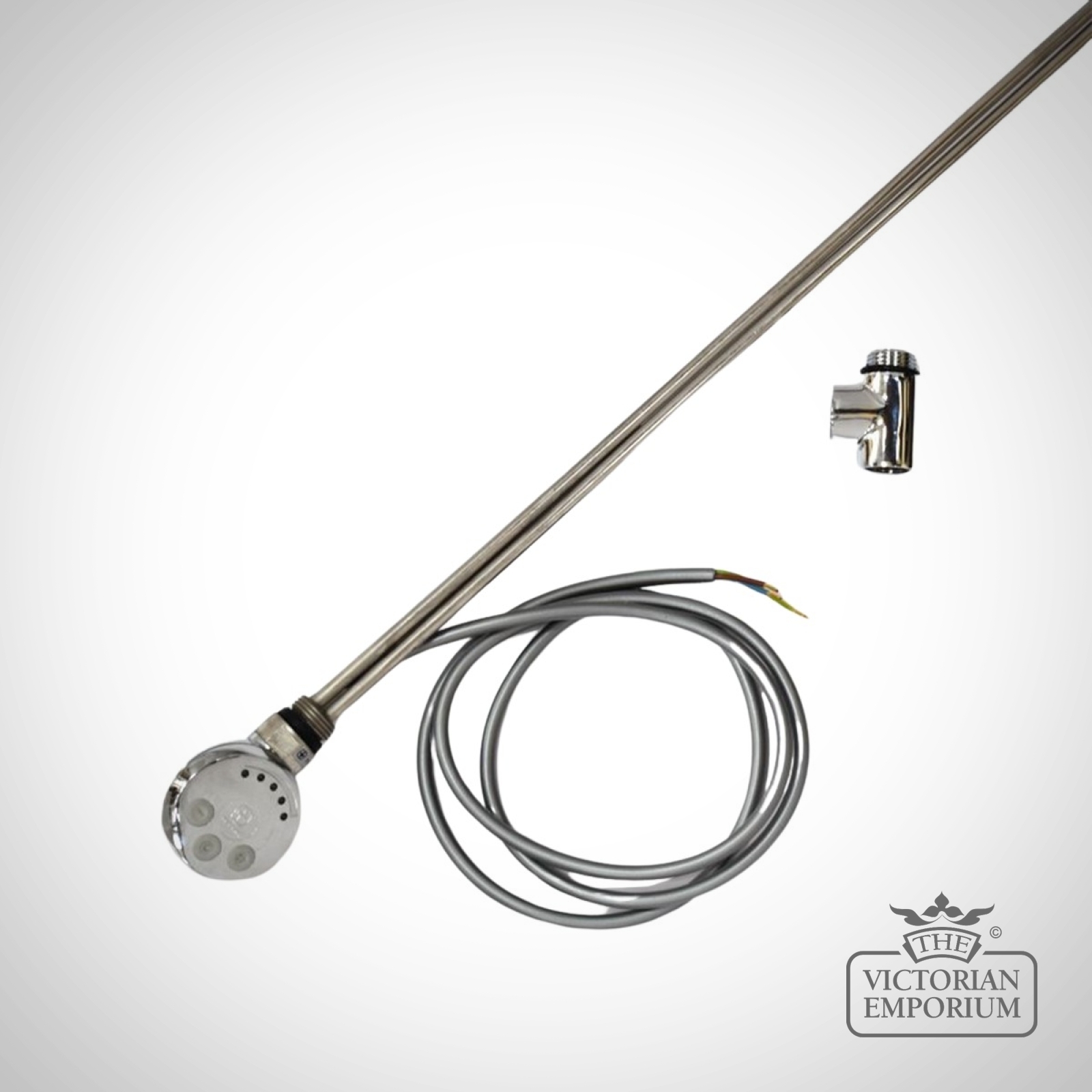 Variable temperature elements, that you can adjust the temperature just as you would with a thermostatic valve. This is if you want your towel rail set up for duel fuel, so that it’s connected to the central heating but when the heating is off in the summer it can run on electric only