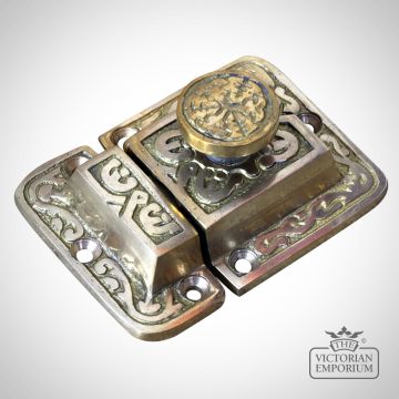Stunning cast solid brass cupboard catch in Eastlake design which would look stunning on kitchen cabinets or living room or bedroom cupboards