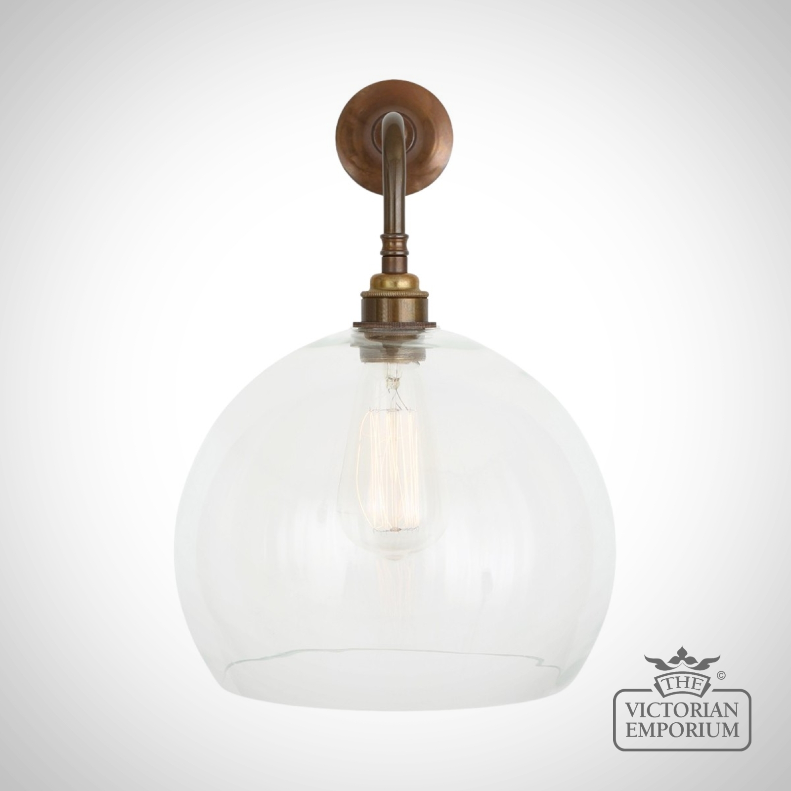 The Eden wall light is a simple wall light with a globe glass lamp shade, open at the bottom allowing easy access to the lamp holder and bulb.