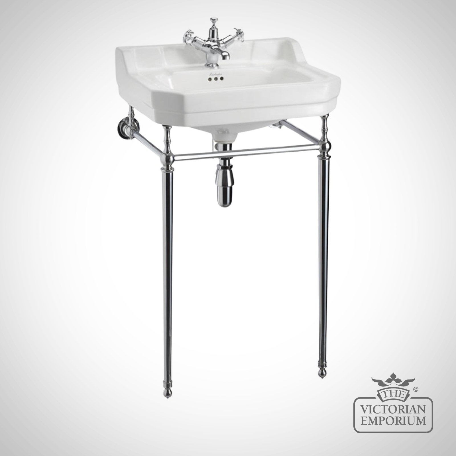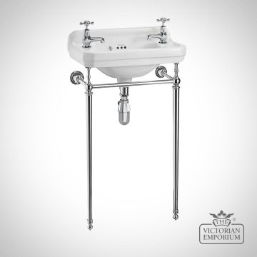 Made of Vitreous China and the washstand is made of brass and chrome plated