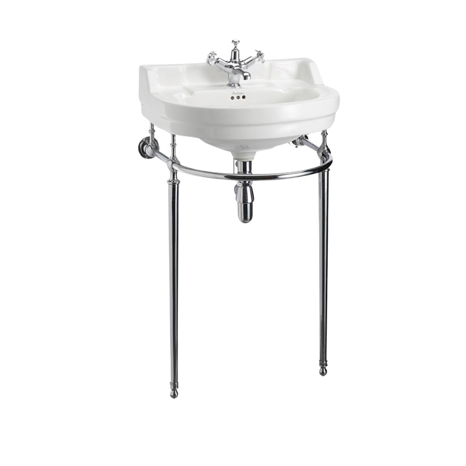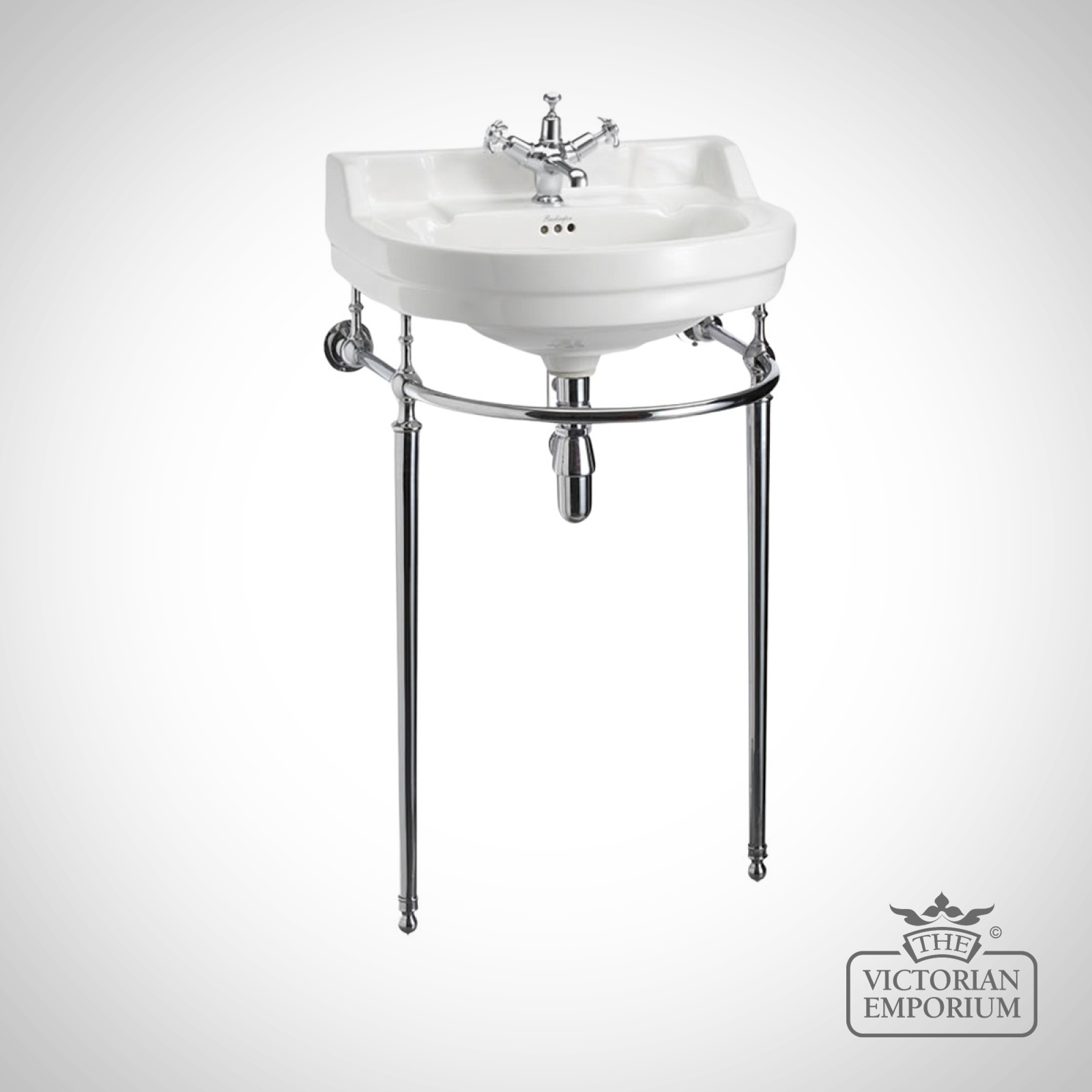 Made of Vitreous China and the washstand is made of brass and chrome plated