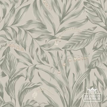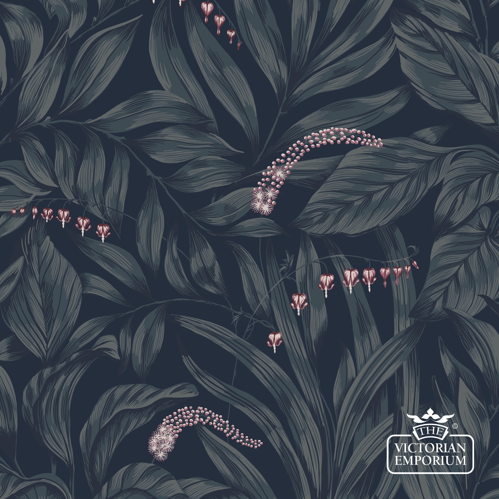Wallpaper featuring a ribbon of pearls adorning the stem of a dreamlike bleeding heart to give a decorative enhancement to a background of powerful rich foliage.