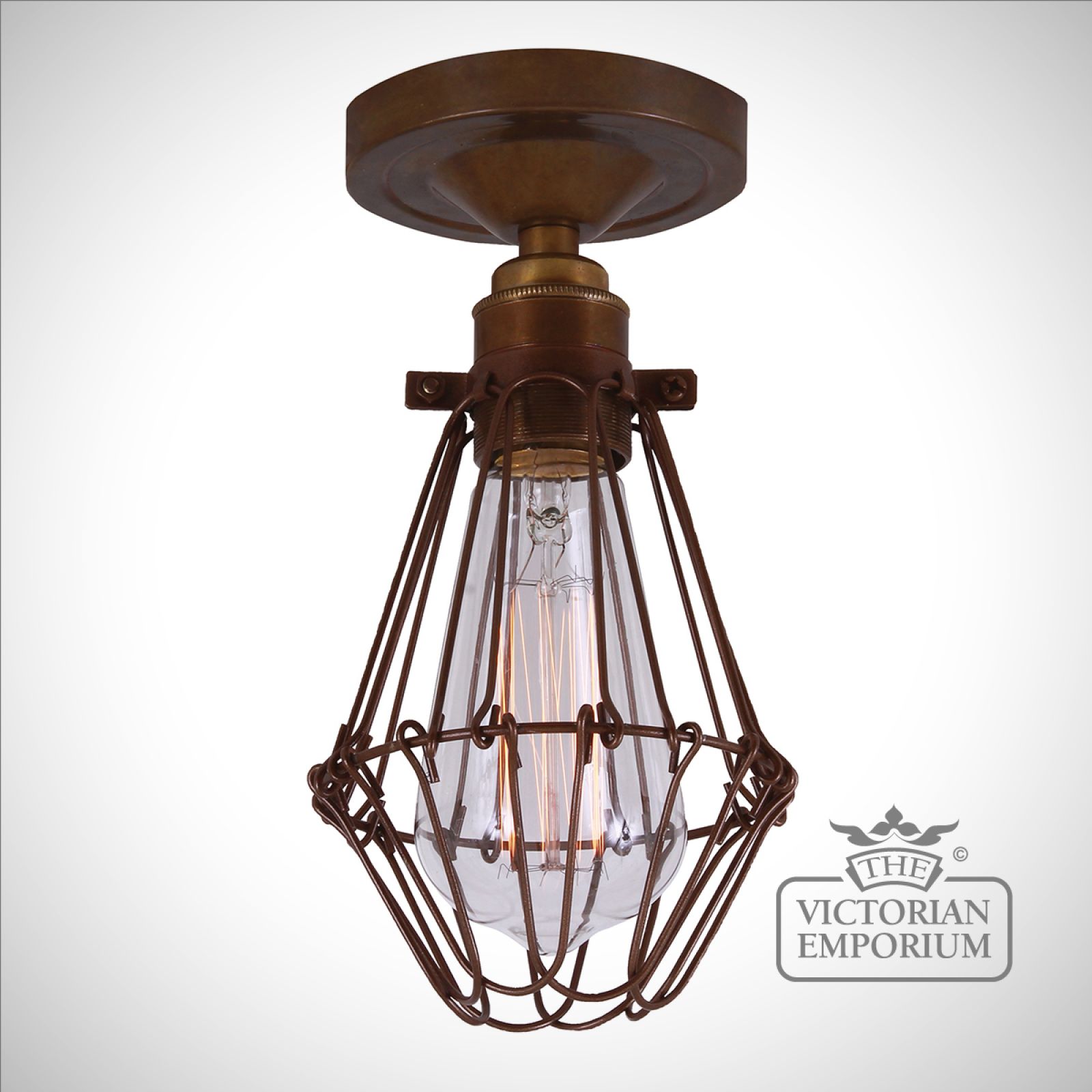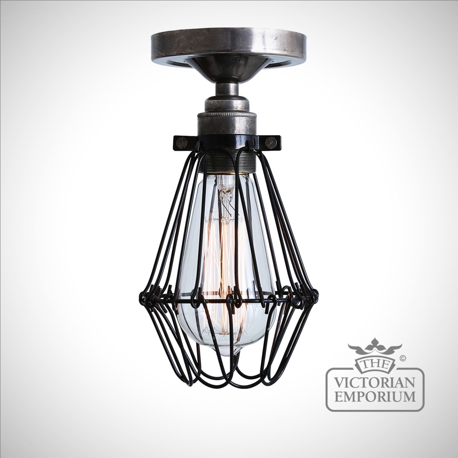 The semi flush ceiling light has an adjustable wire cage that can be altered easily to your own preference and looks great when teamed with an Edison-style filament bulb to enhance an industrial atmosphere. Bulbs are sold separately.