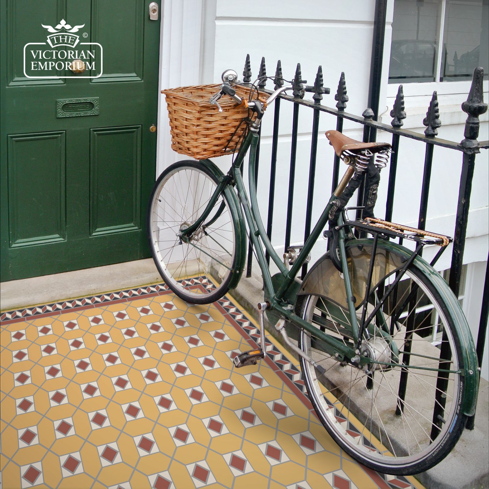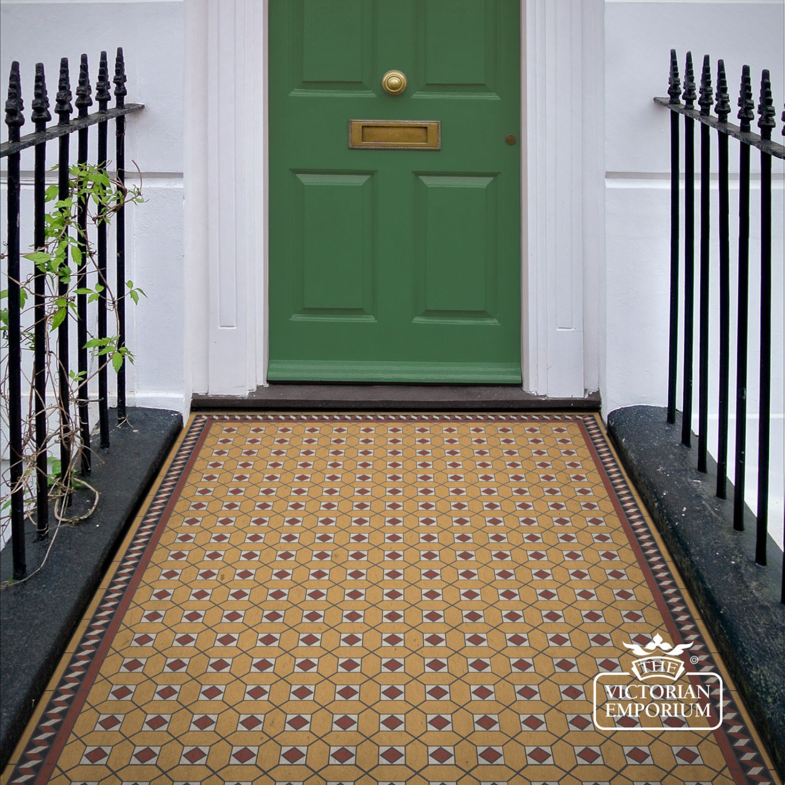 Victorian mosaic centre pattern tiles in a Victorian colour palette of Red, Yellow and White - sold by the sheet.