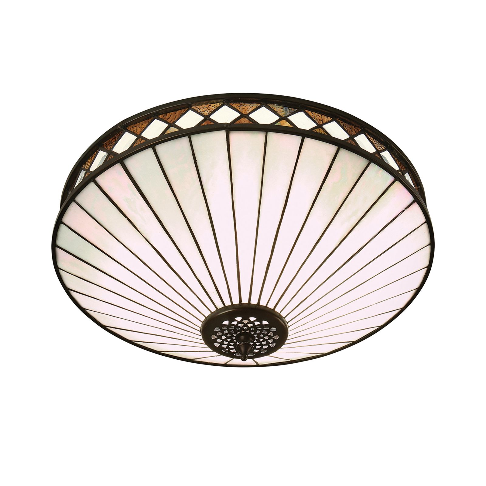 This Tiffany style flush mount ceiling light is a beautifully understated design comprising of clean lines with a diamond shaped border